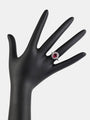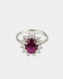 Silver ring with a central piece in oval cut aquamarine color and a halo of white cubic zirconia.