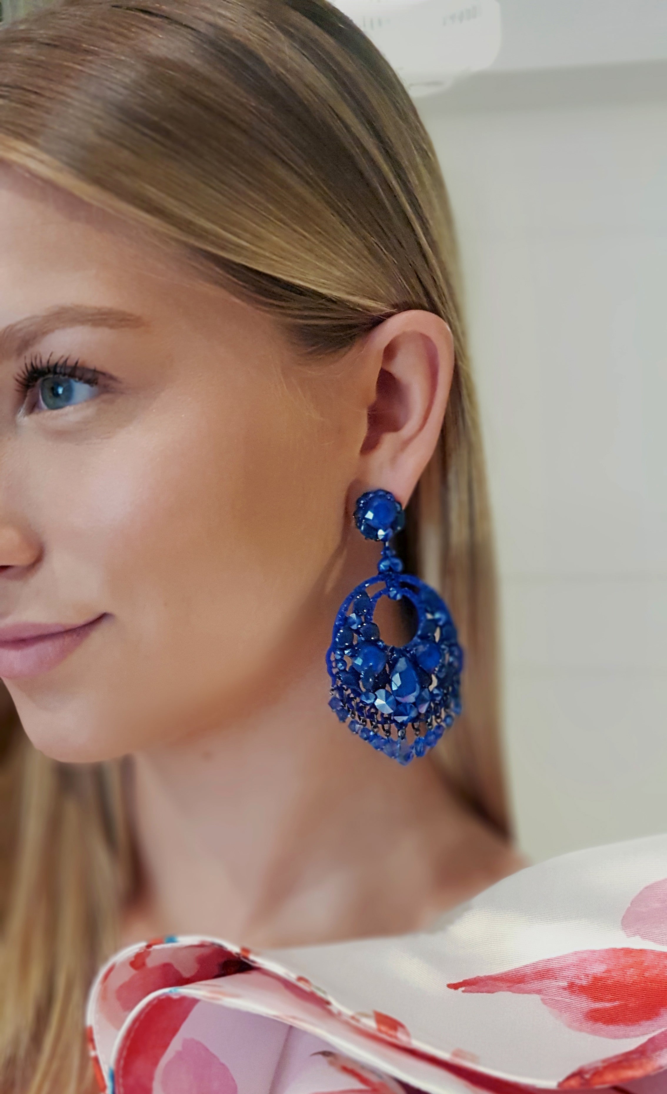 Articulated hoop design with faceted Swarovski crystal in Klein blue