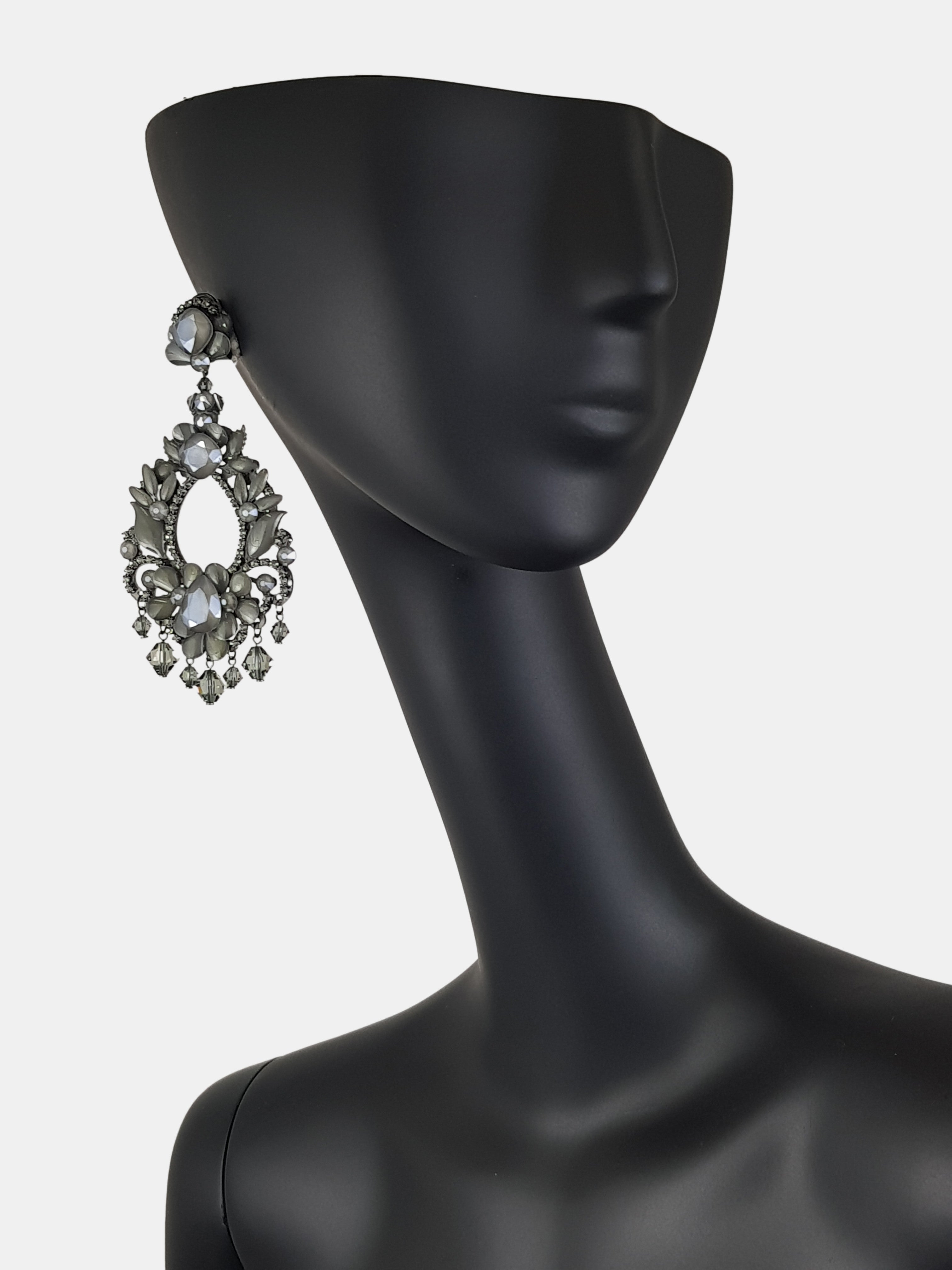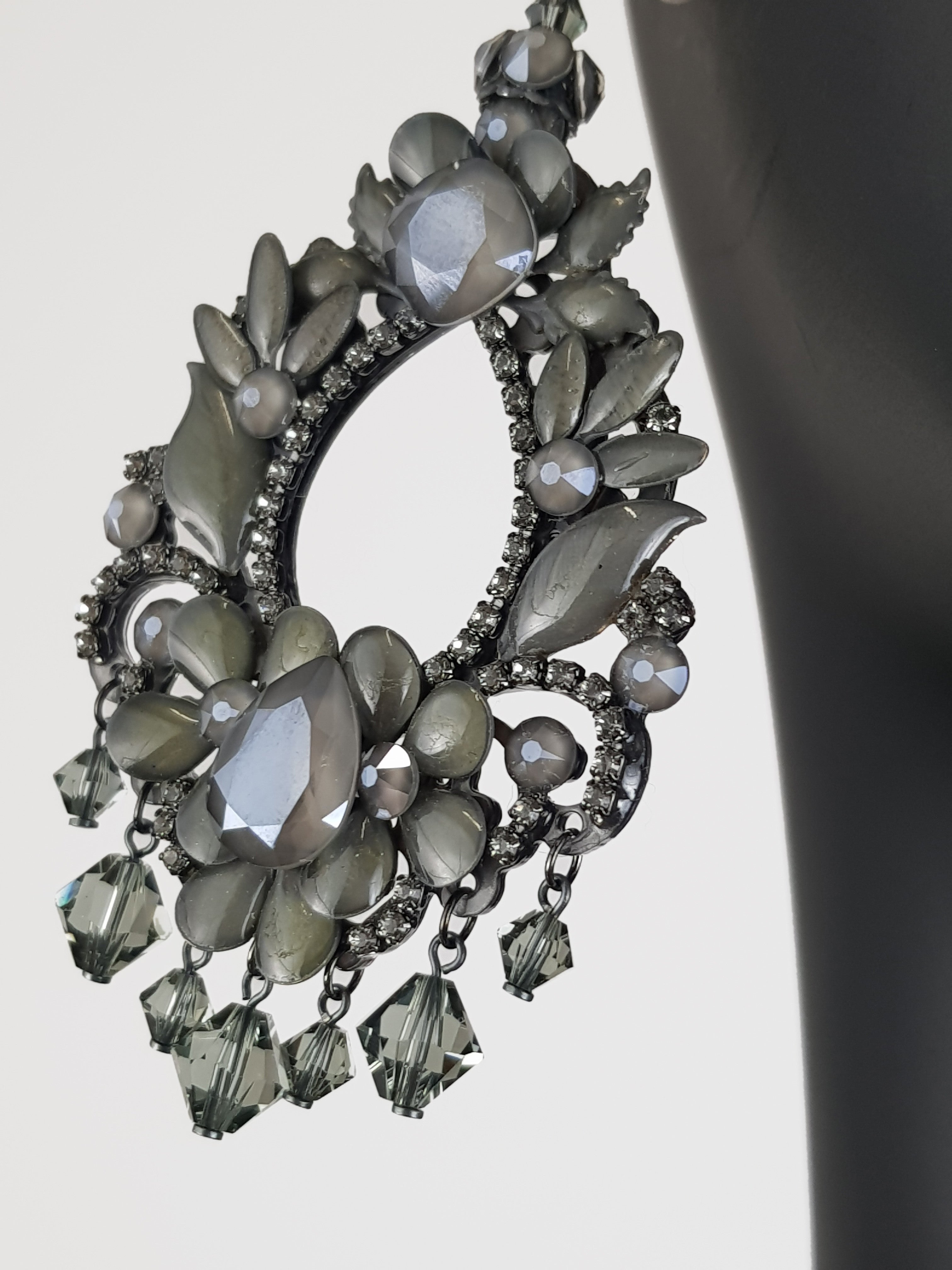 Articulated hoop design with faceted Swarovski crystal in misty grey
