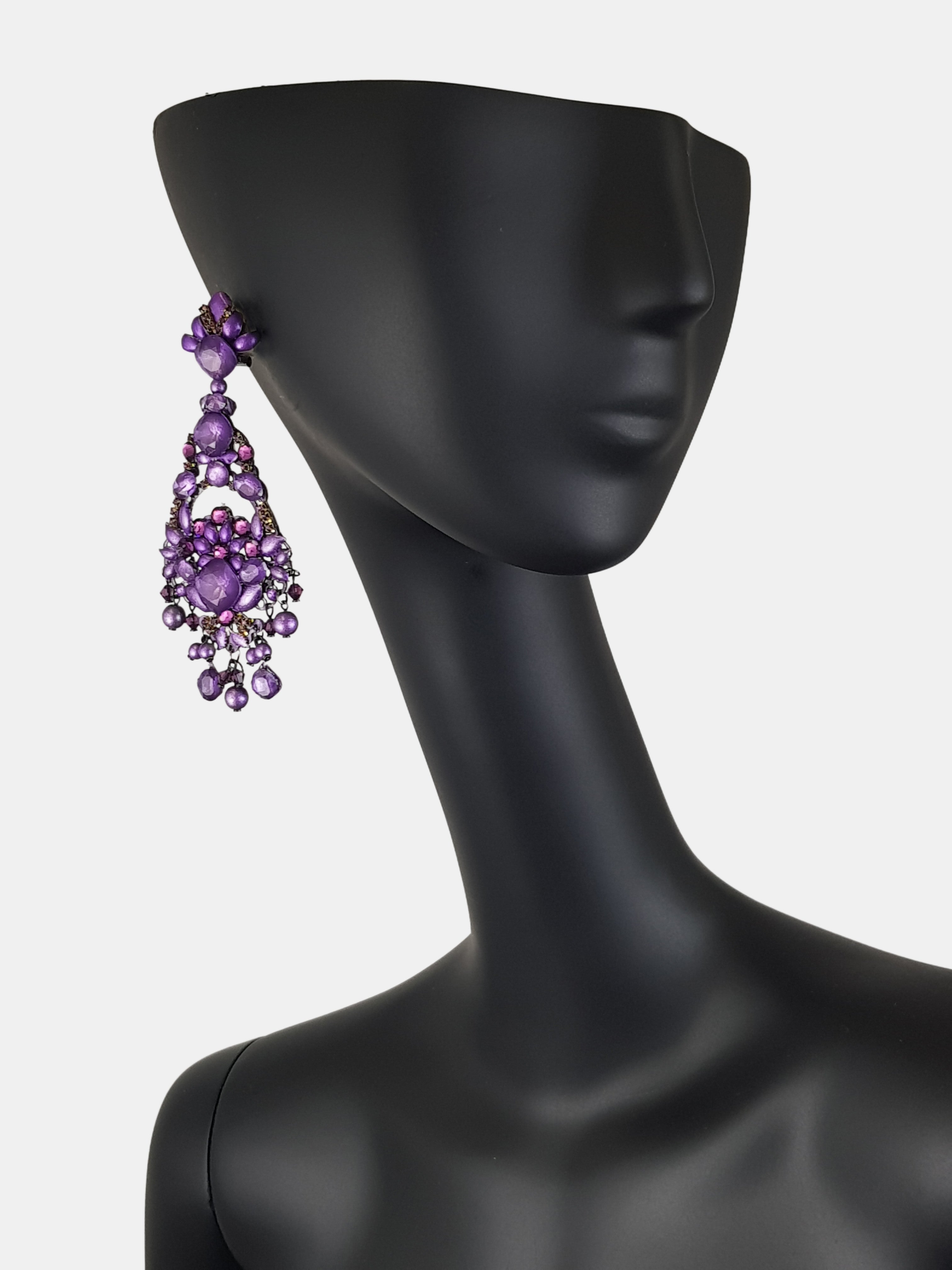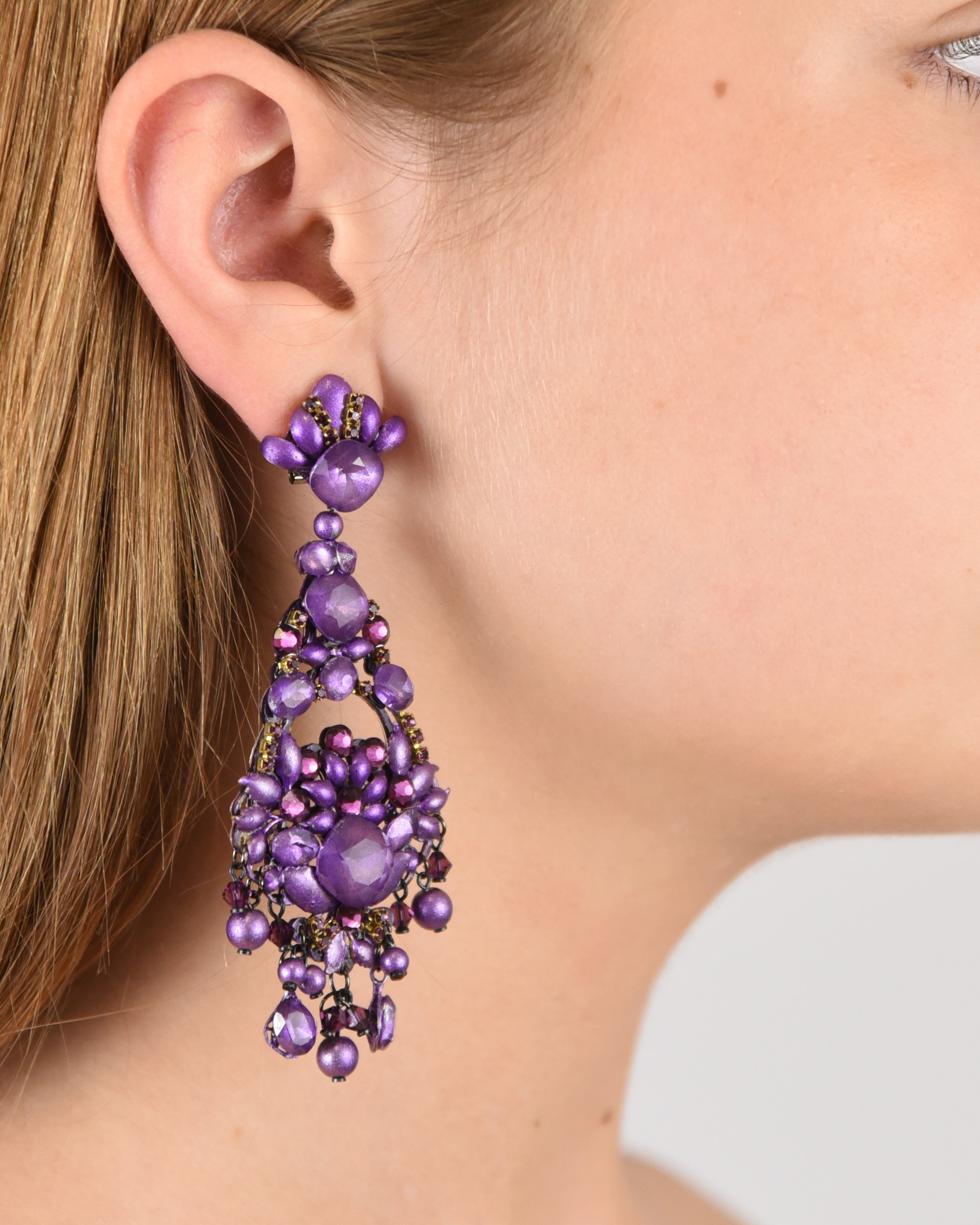 Articulated chandelier design with faceted Swarovski crystal in shades of purple