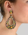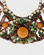 Made of mother-of-pearl and rhinestone crystal in shades of brown, green and mustard