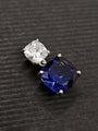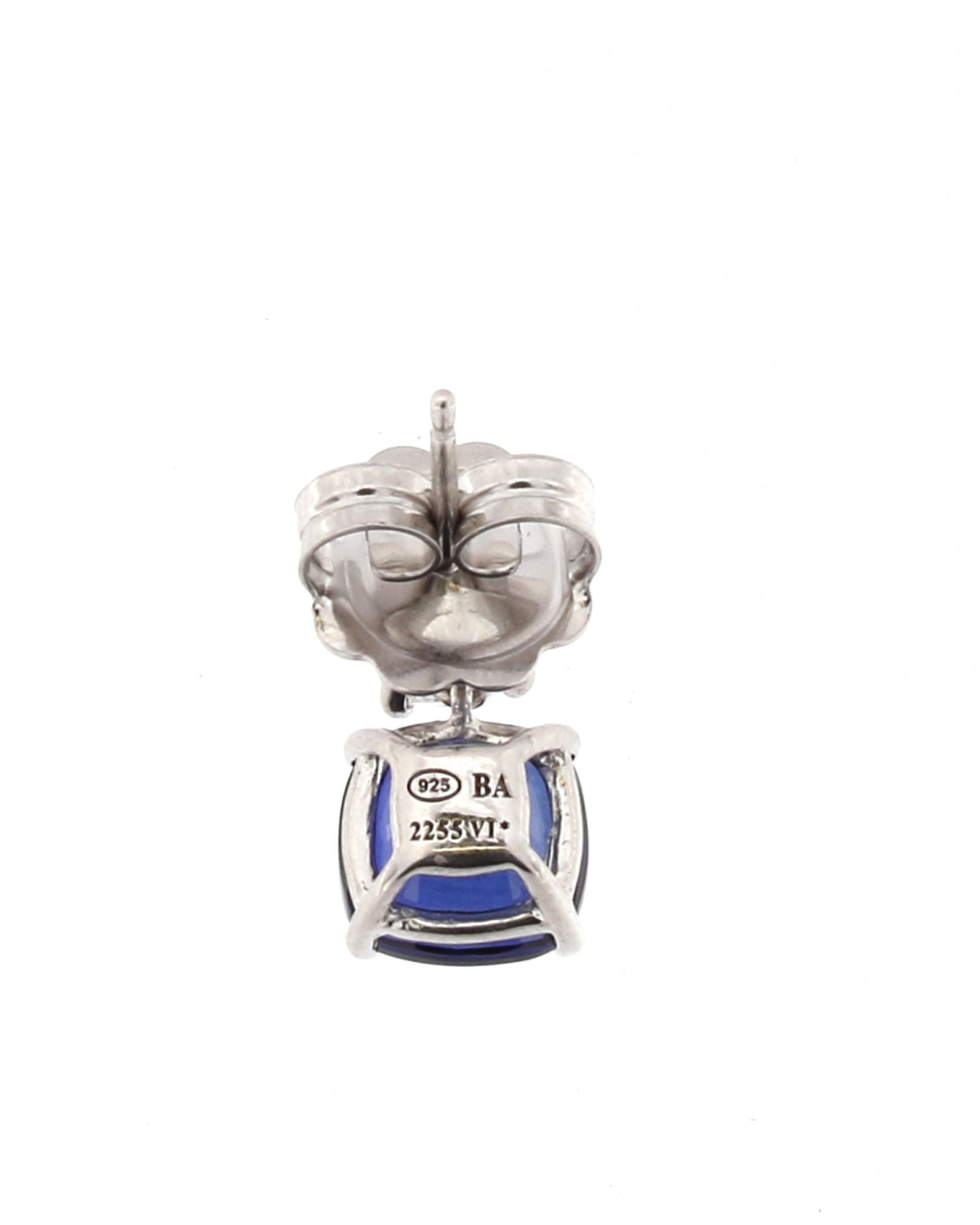 Silver earrings with sapphire blue and white cubic zirconia stones , hand-set .