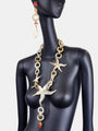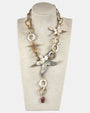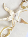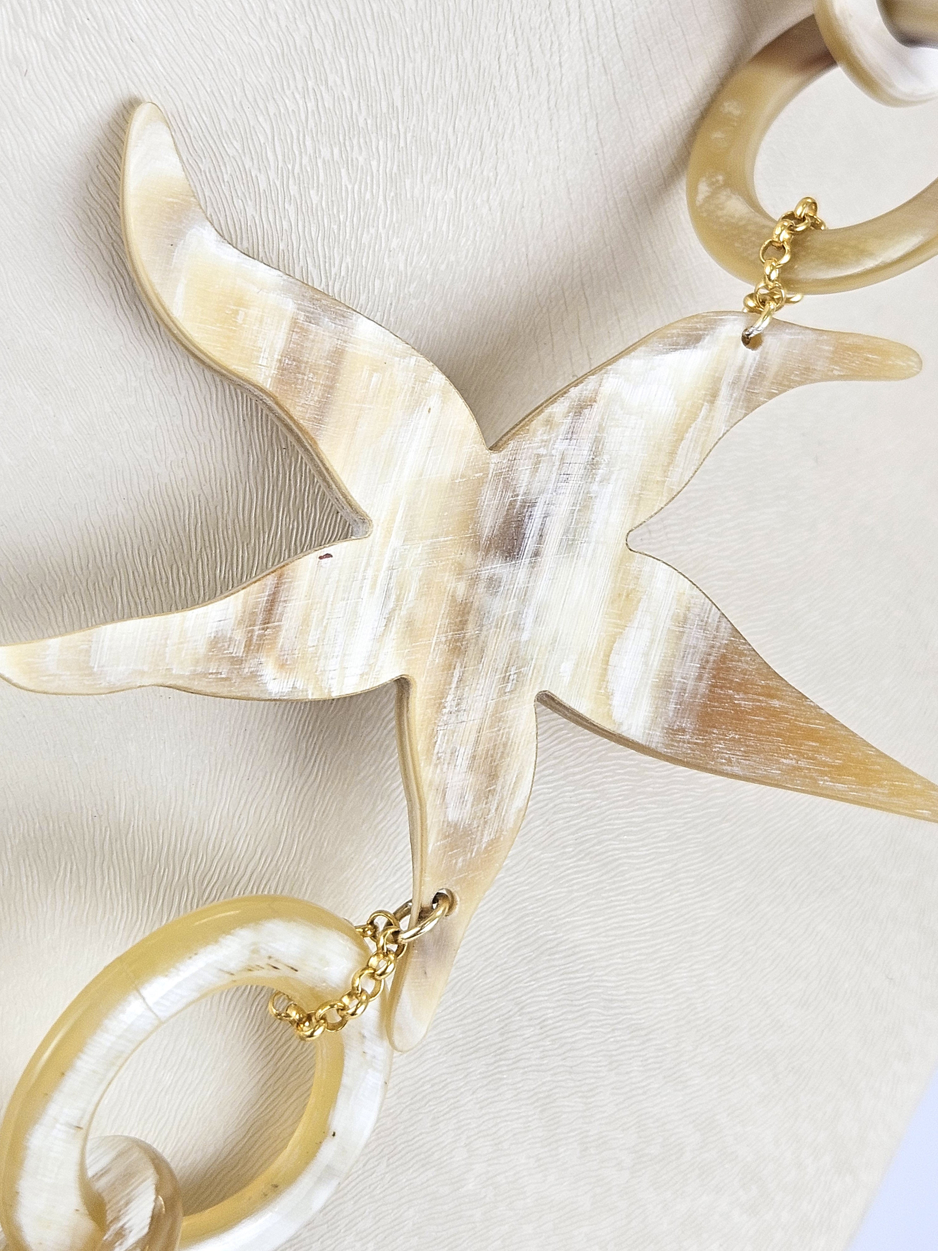 Collier composé de maillons en corne naturelle, de motifs marins et de corail.