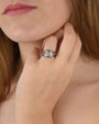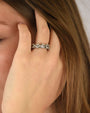 Anillo de plata tallado con 10 piedras redondas (4mm) cristal de roca