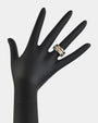 Anillo artesanal de Gabriela Styliano, realizado en plata oxidada 925 con acabado de oro amarillo.