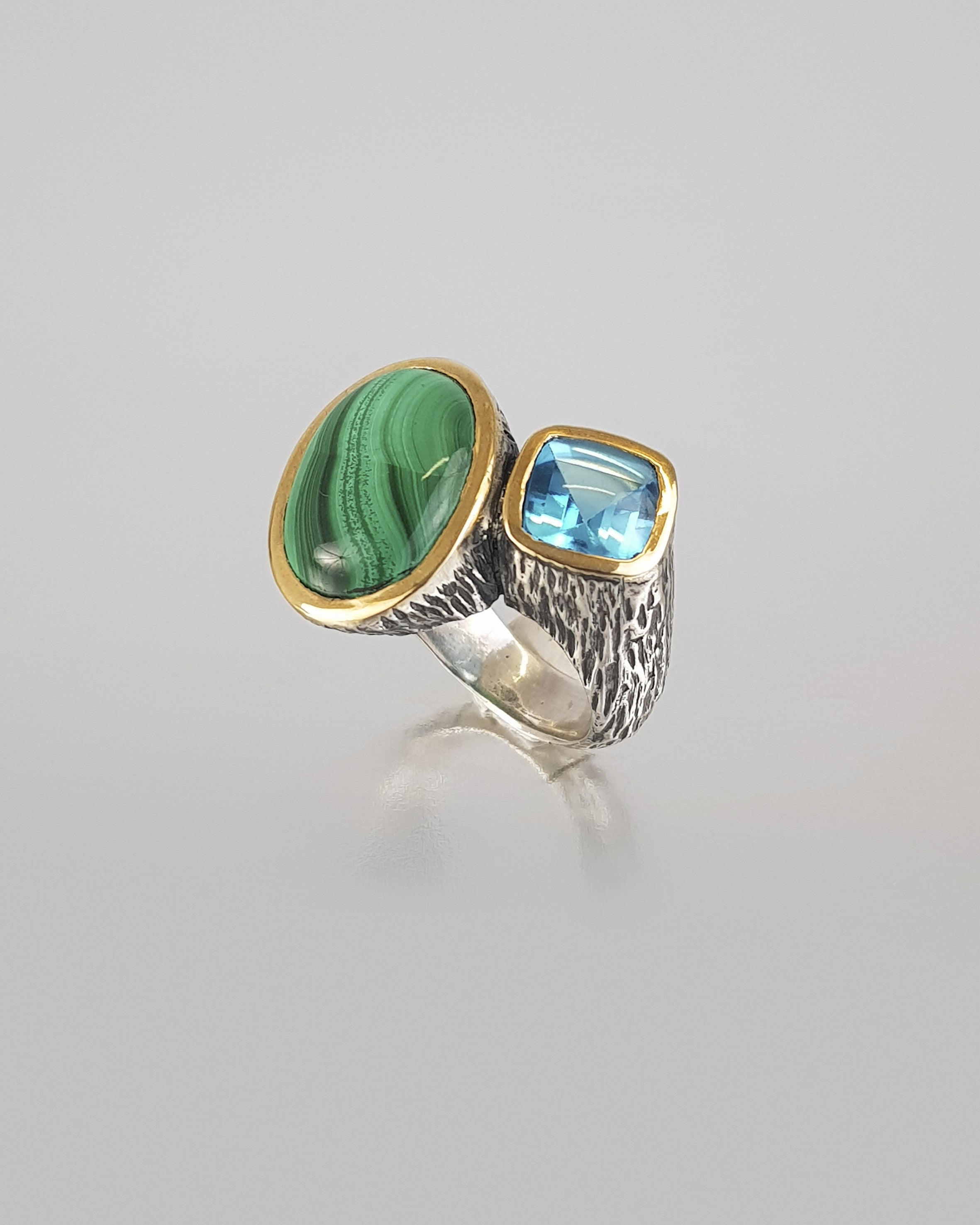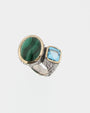 Anillo malaquita y topacio azul