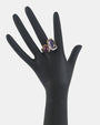 Diseño realizado a mano sobre plata de ley con amatista y rubí
