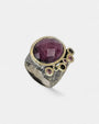 Anillo artesanal de Gabriela Styliano, realizado en plata oxidada 925 con detalles en oro amarillo de 18 kt.