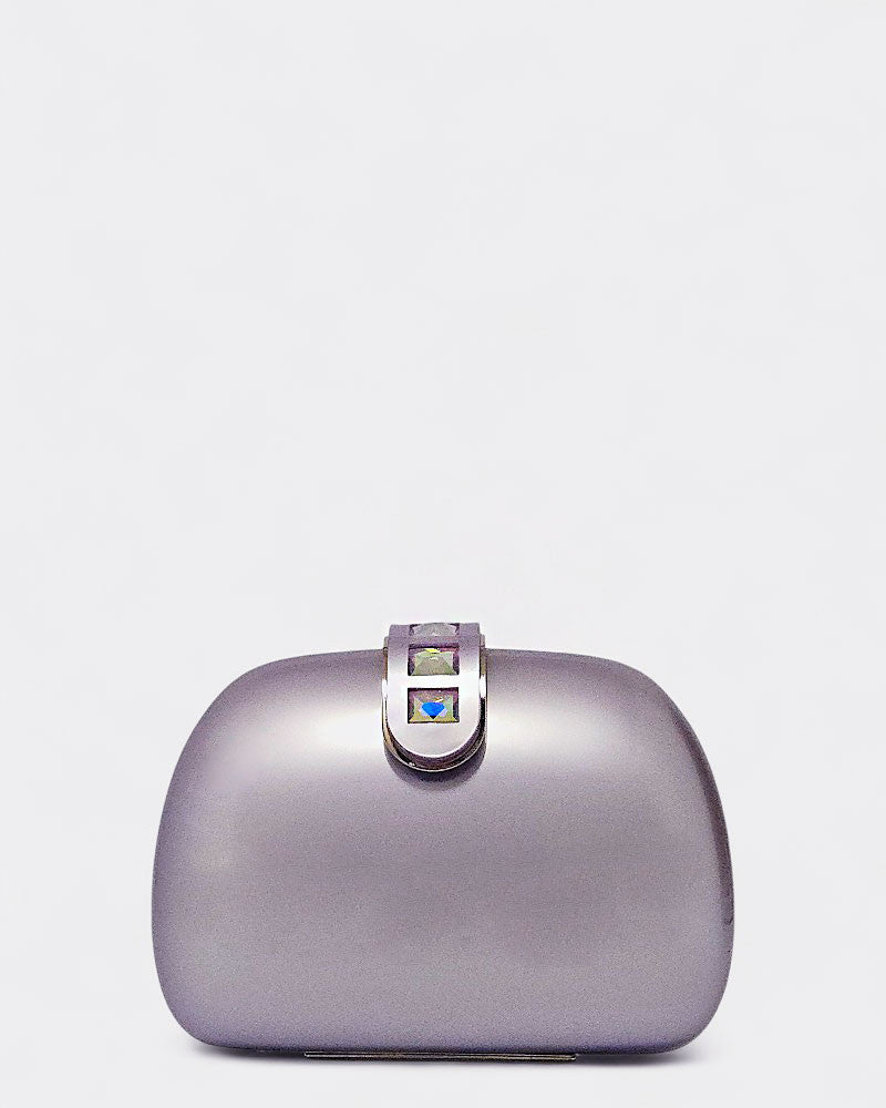 Delicado pero impactante. Este bolso de fiesta en color lila, con su acabado satinado rígido y cierre joya de cristal, está diseñado para ser el centro de todas las miradas. Creado para Sanci, combina un tono lila suave y luminoso con una estructura elegante que aporta presencia. El detalle del cristal en el cierre añade un toque de brillo sofisticado, ideal para bodas, eventos y noches especiales.
