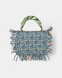 Ciere de solapa clip con flecos/ interior con dos compartimentos y dos bolsillos con cremallera.