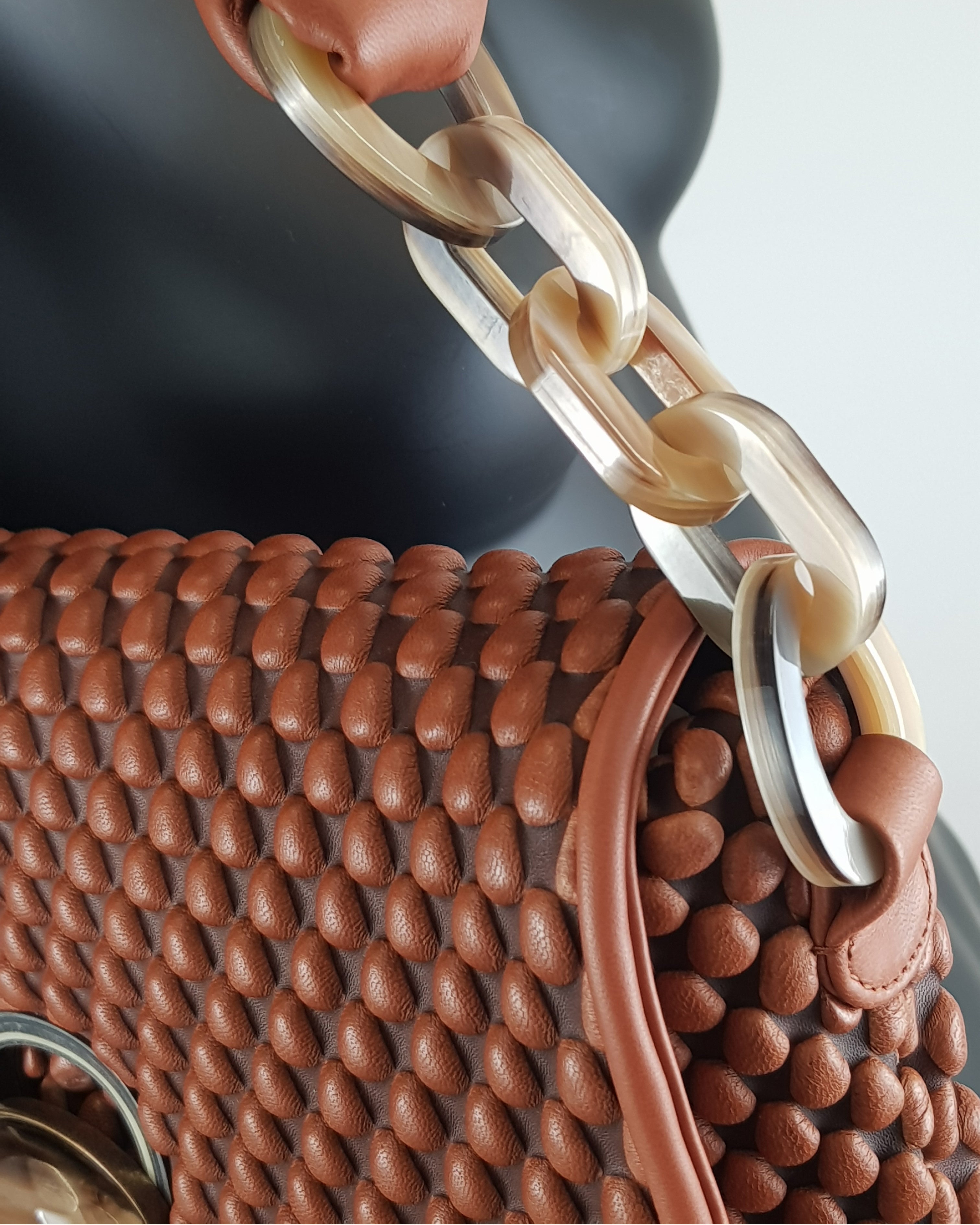 Asa en piel de cordero. Cierre y cadena de asta natural.