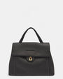 Diseñado en piel negra de alta calidad, este bolso con solapa estructurada, doble asa de mano y bandolera ajustable combina elegancia y funcionalidad en cada detalle. El cierre giratorio metálico aporta un toque sofisticado y garantiza seguridad, mientras que su diseño versátil permite llevarlo al hombro, cruzado o en la mano. Ideal para acompañar looks urbanos o más formales, es un accesorio atemporal pensado para mujeres que valoran el estilo, la calidad y la practicidad.