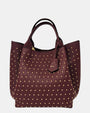 Eleva tu estilo con este bolso shopper de piel auténtica en tono burdeos, diseñado por la firma alemana Abro. Su acabado elegante con tachuelas doradas cuidadosamente distribuidas aporta un toque sofisticado y moderno, perfecto para acompañarte en tu día a día con un aire de distinción.