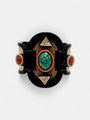 Brazalete Art Déco con piedras en verde esmeralda y rojo coral