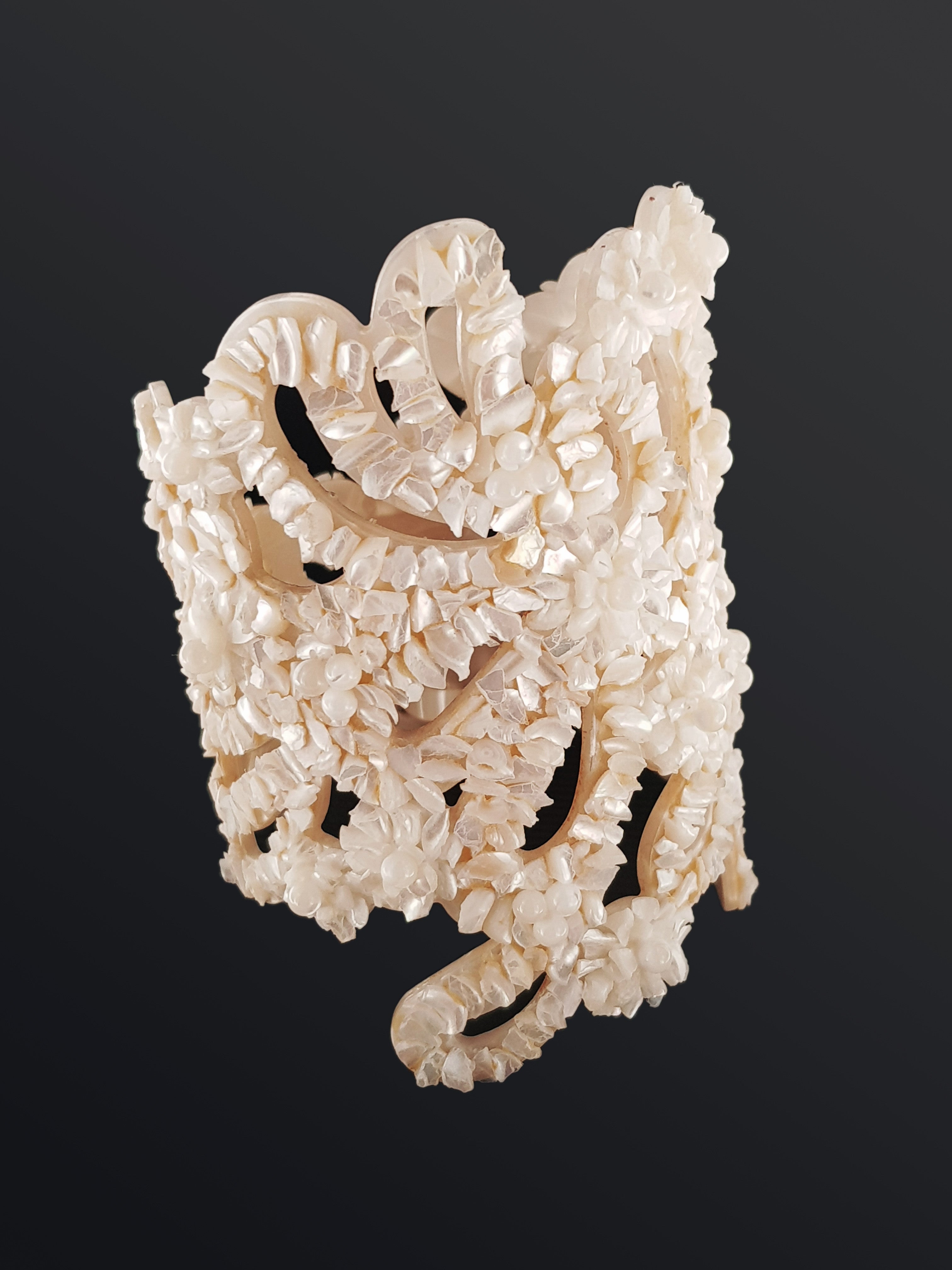 Diseño en mosaico de nácar y madreperla sobre base de acetato