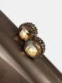 Diseño en color visón con cierre de cristales facetados en color dorado