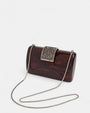 El borgoña, ese tono entre vino, rojo quemado y púrpura, se realza con las aguas del bolso, que juegan con la luz y le dan dimensión. Ideal para bodas de noche, celebraciones especiales o cenas donde quieres llevar algo diferente, pero refinado.