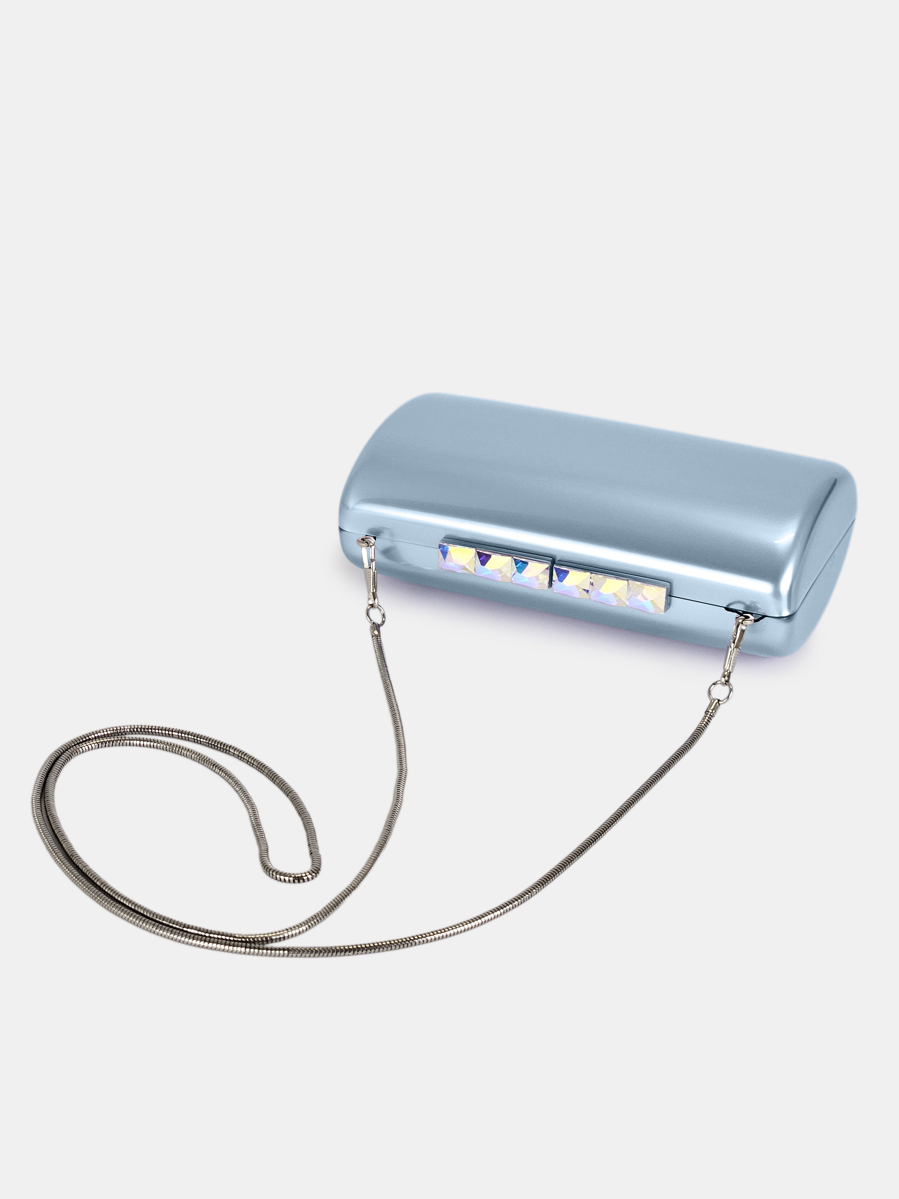 Diseño en color azul con cierre de Swarovskis facetados en color plateado iridiscente