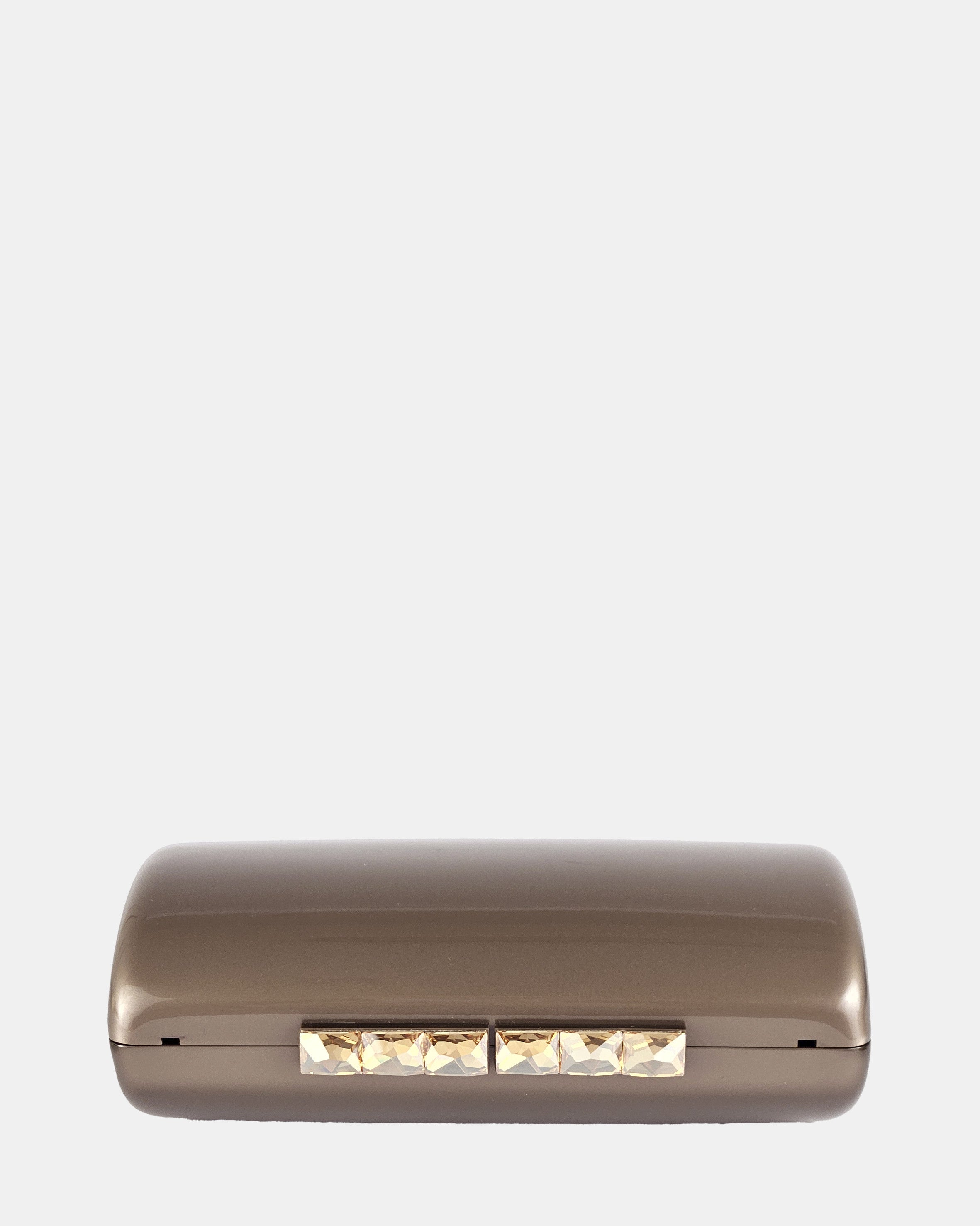 Diseño en color visón con cierre de Swarovskis facetados en color dorado iridiscente