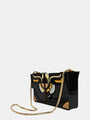 Clutch Gissa Bicalho negro acrílico con cadena dorada