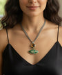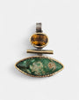 El colgante WHISKY VARISCITE es una joya artesanal única que combina la elegancia del cuarzo whisky con la energía natural de la variscita verde. Su diseño destaca por una montura de plata labrada con detalles en oro, creando un contraste sofisticado entre los tonos metálicos y las piedras naturales.
