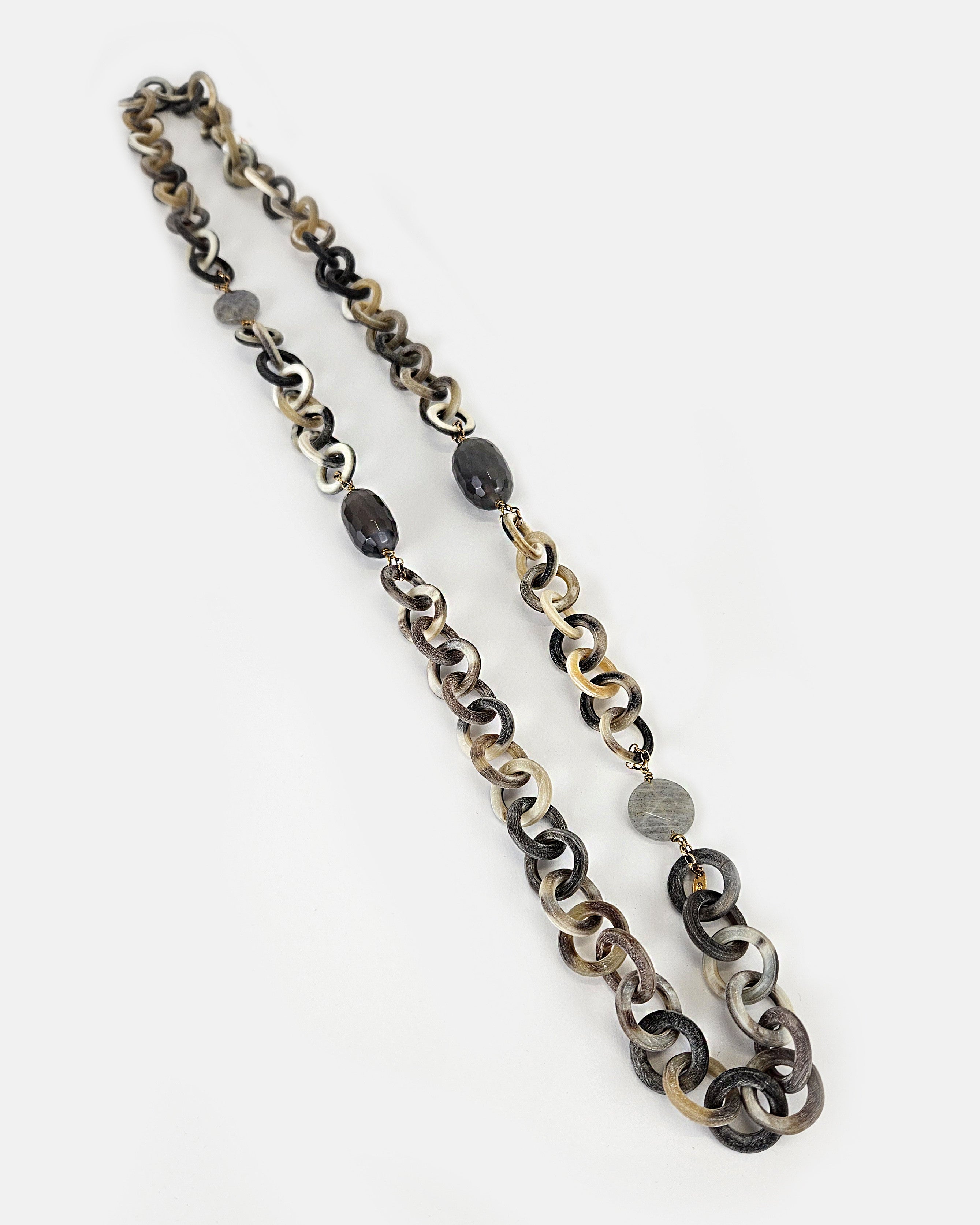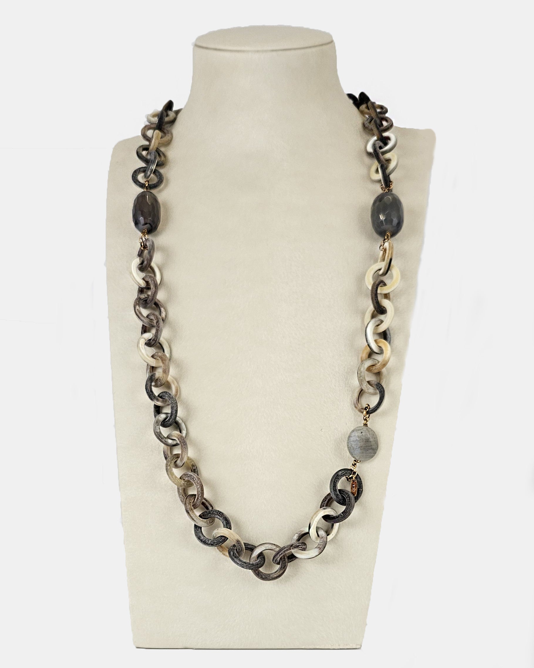 Collar de cuerno natural, ágata uruguay, labradorita, plata