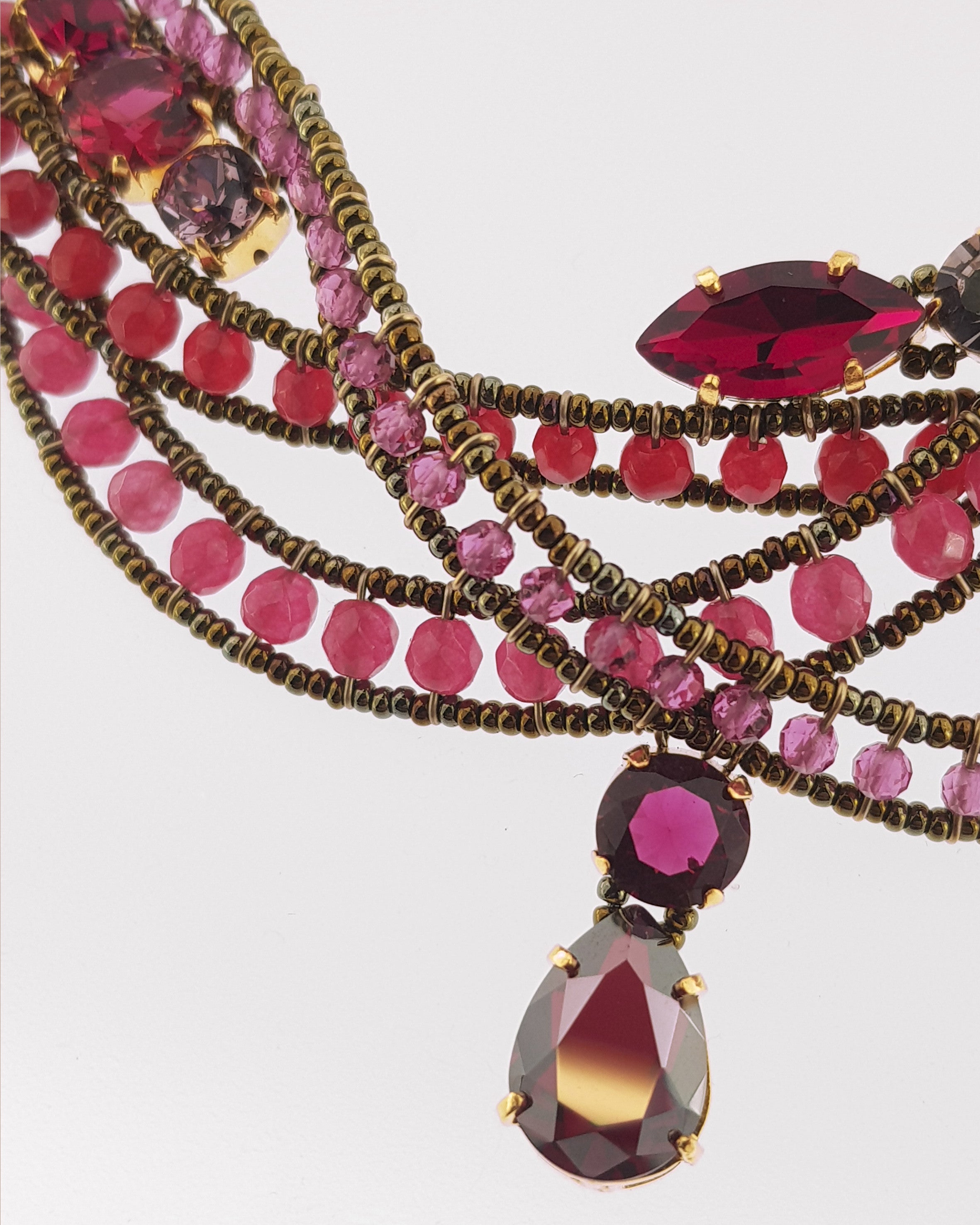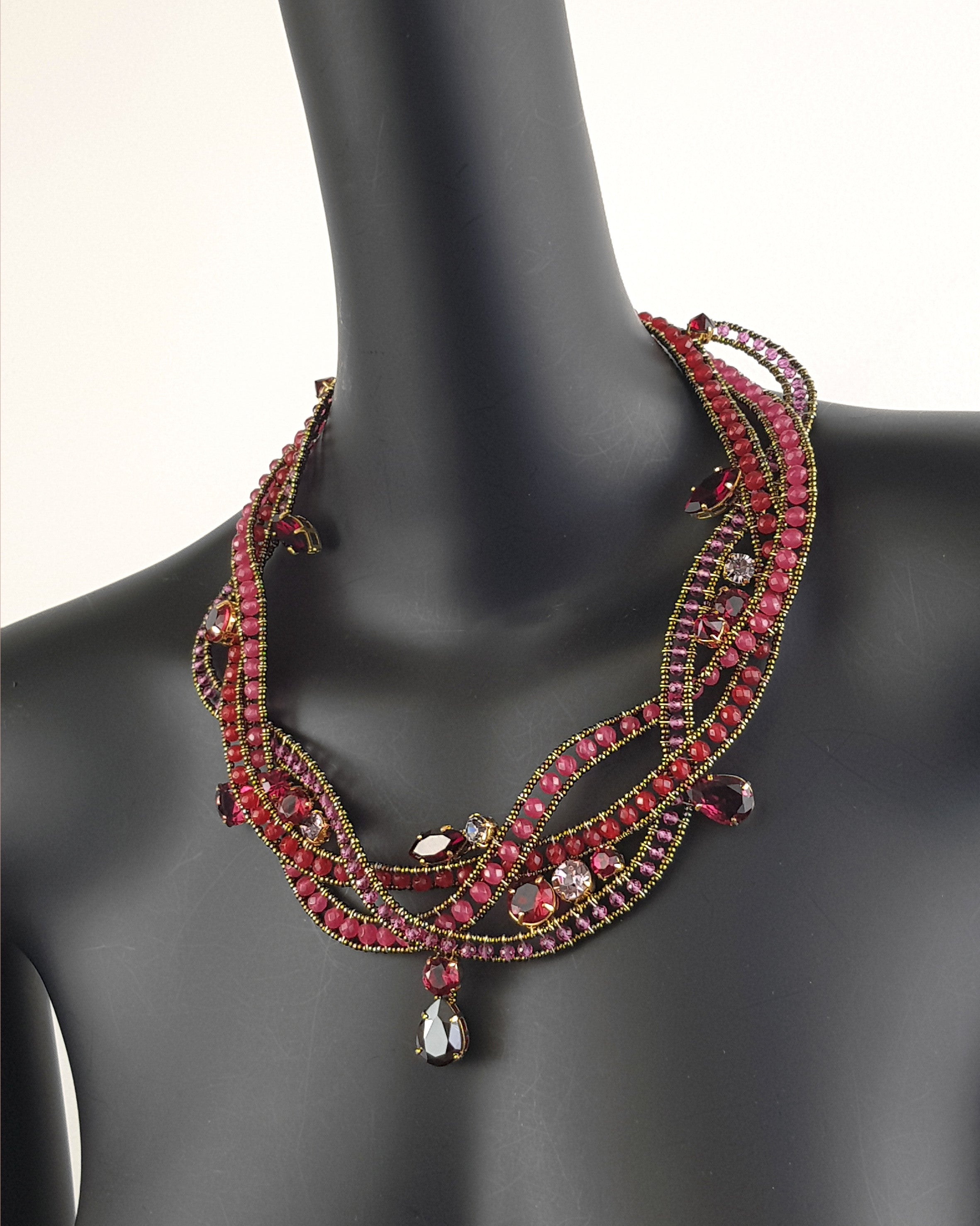Cristales engastados a mano en tonos rojos