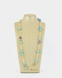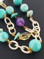Collar largo que combina el cuerno natural y piedras semipreciosas amazonita, amatista y citrino