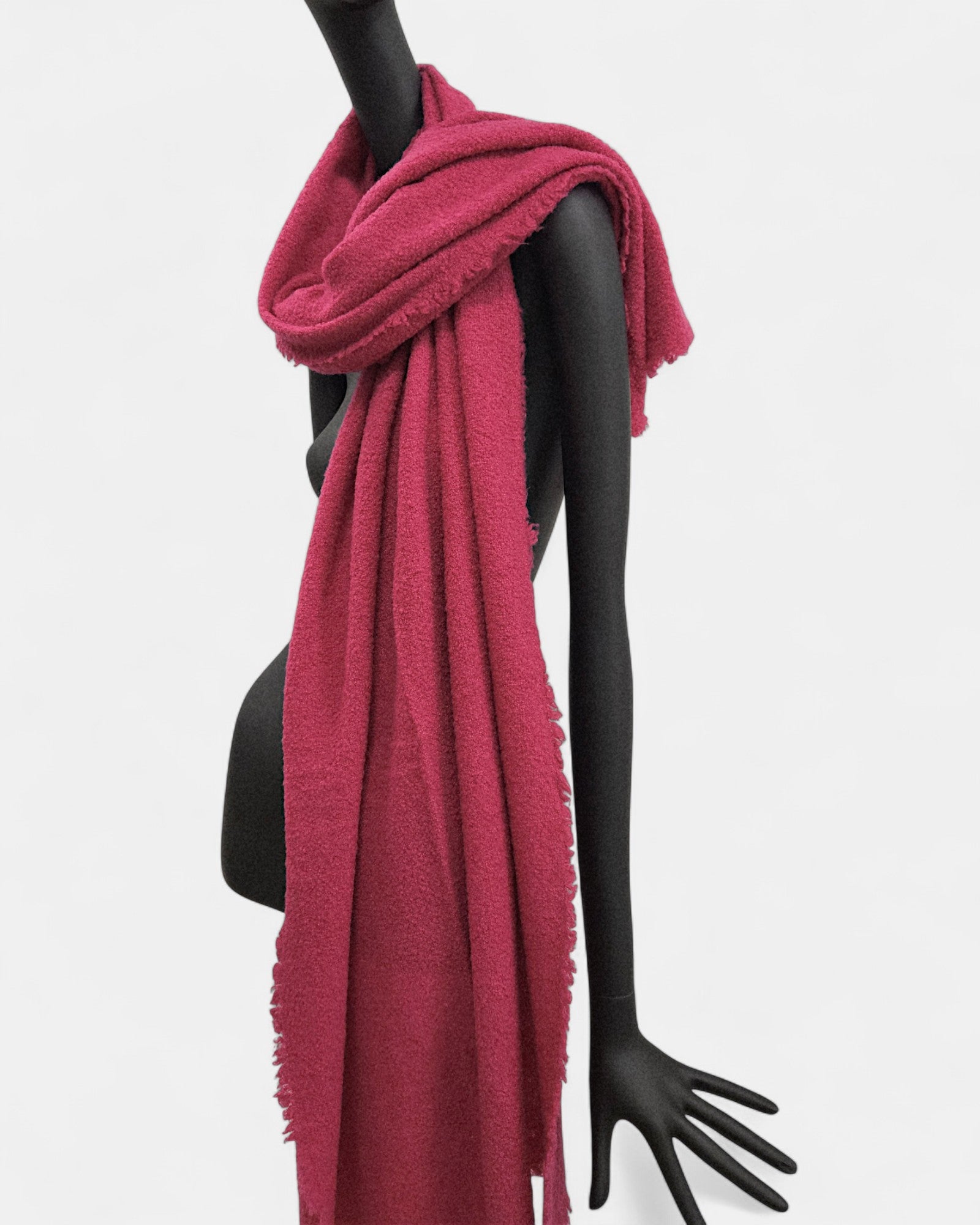 El fular Alexia es una pieza cálida y elegante confeccionada en una mezcla de lana y cashmere que ofrece suavidad y confort excepcionales. Su diseño destaca por un color fresa llamativo, ideal para los días más frescos.