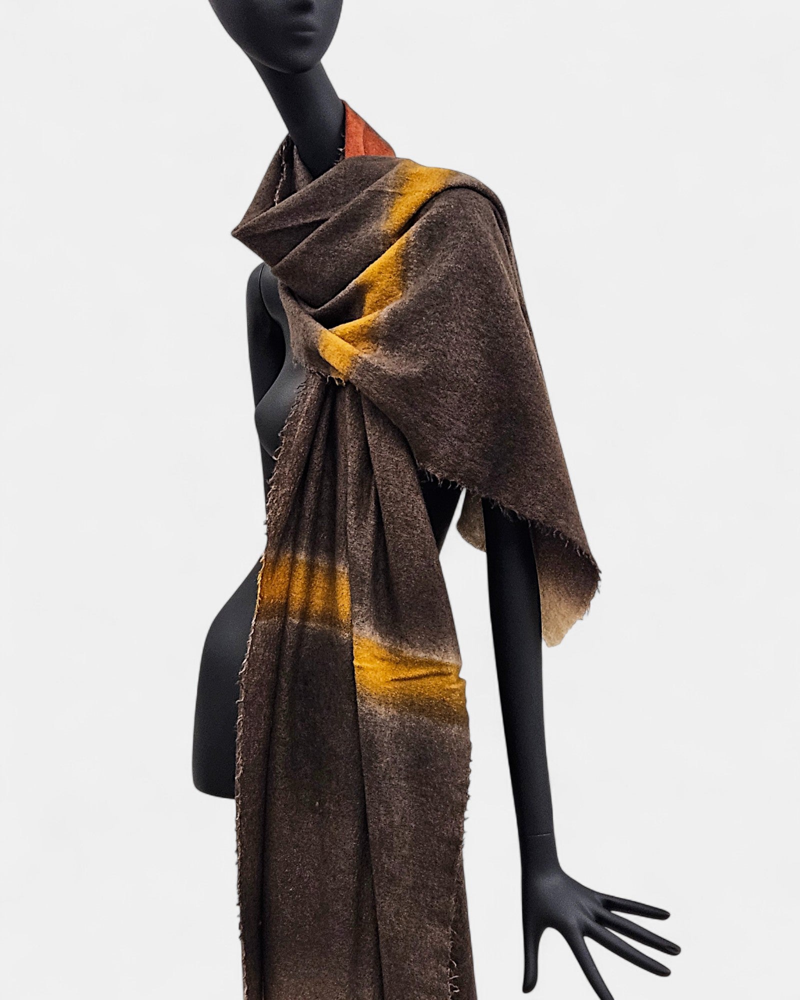 Con un acabado suave al tacto y bordes ligeramente desflecados, este fular se convierte en la pieza ideal para uso diario y ocasiones especiales. Su estética versátil permite combinarlo con prendas neutras o con tonos otoñales, realzando cualquier look.