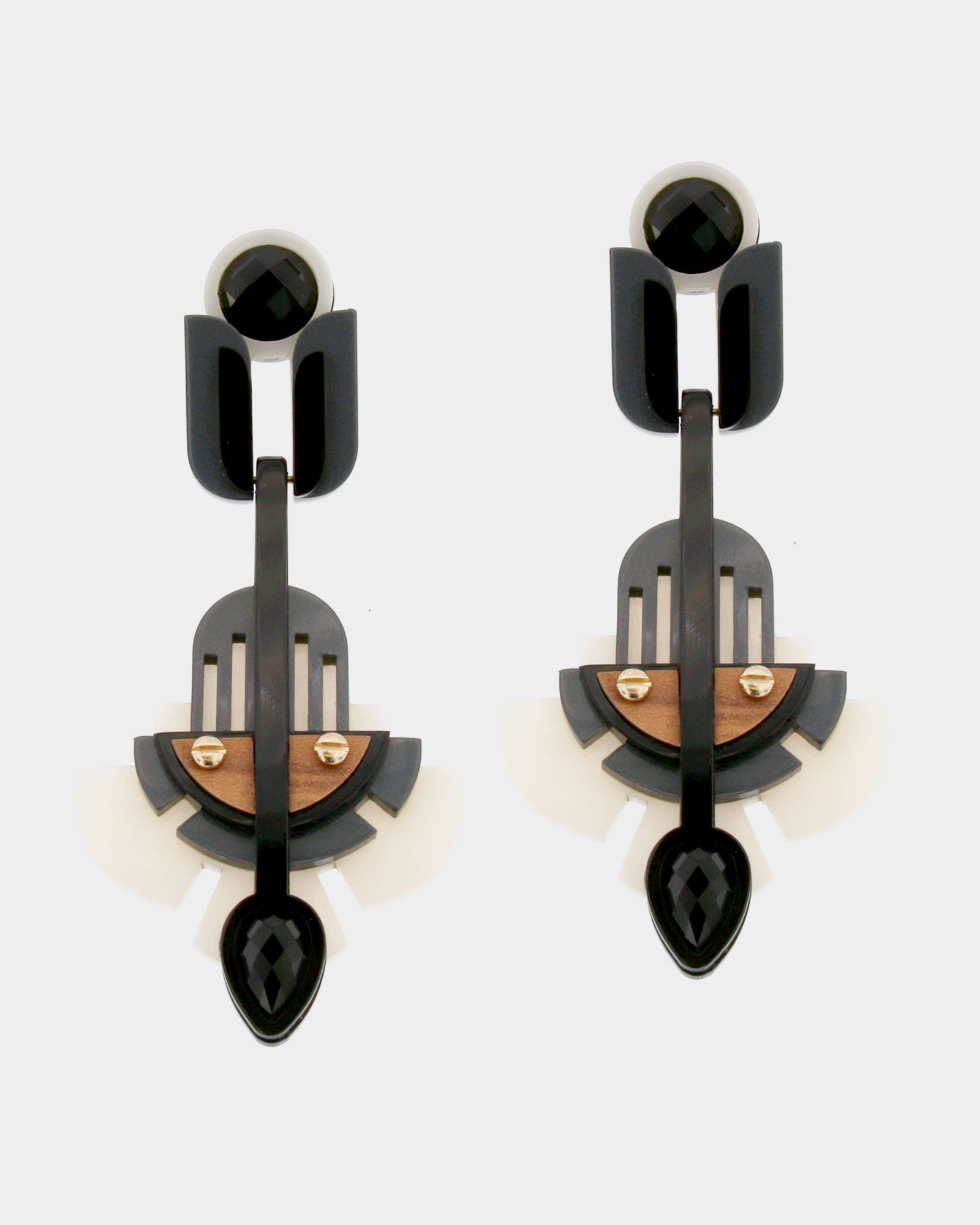 Pendiente de resina en color blanco y negro decorado con cristal negro