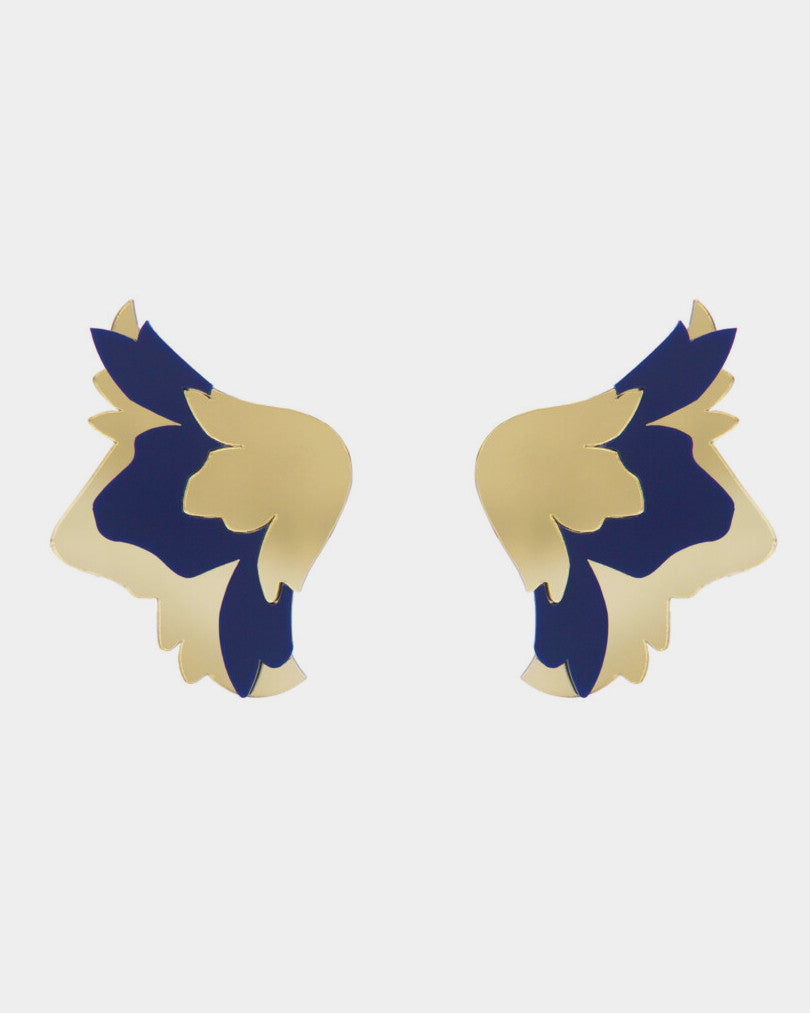 Diseño realizado en plexiglás espejo, colores dorado y azu, con motivos geométricos
