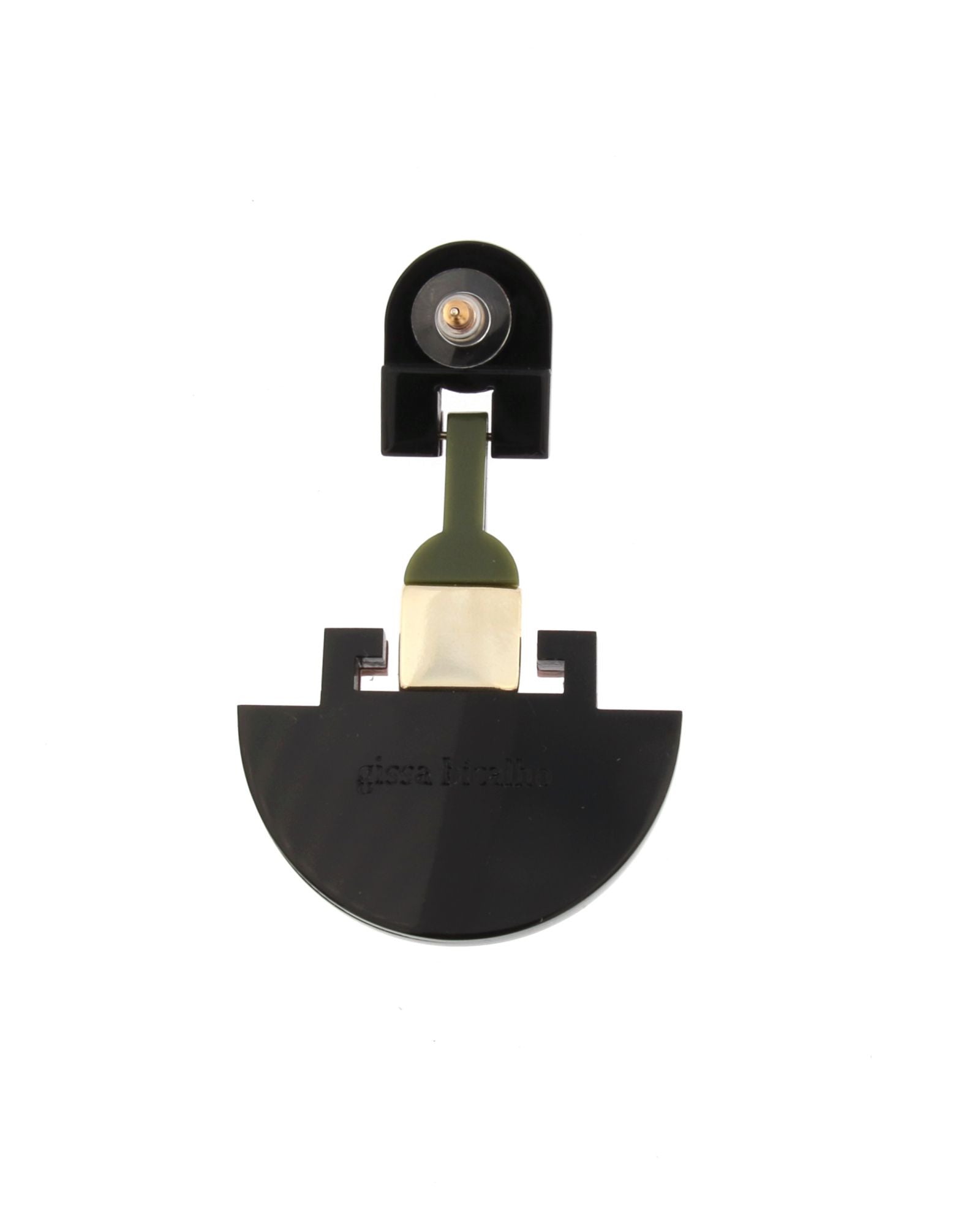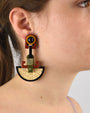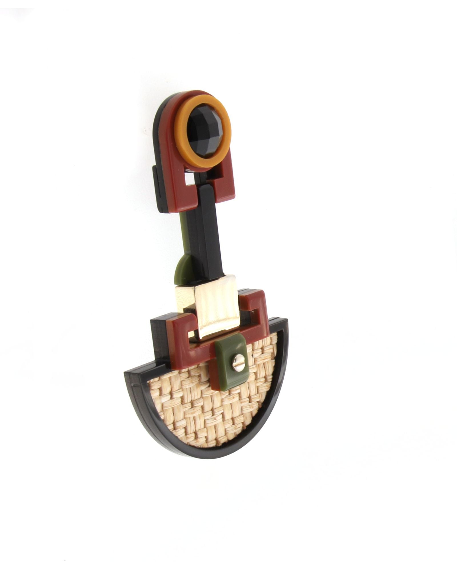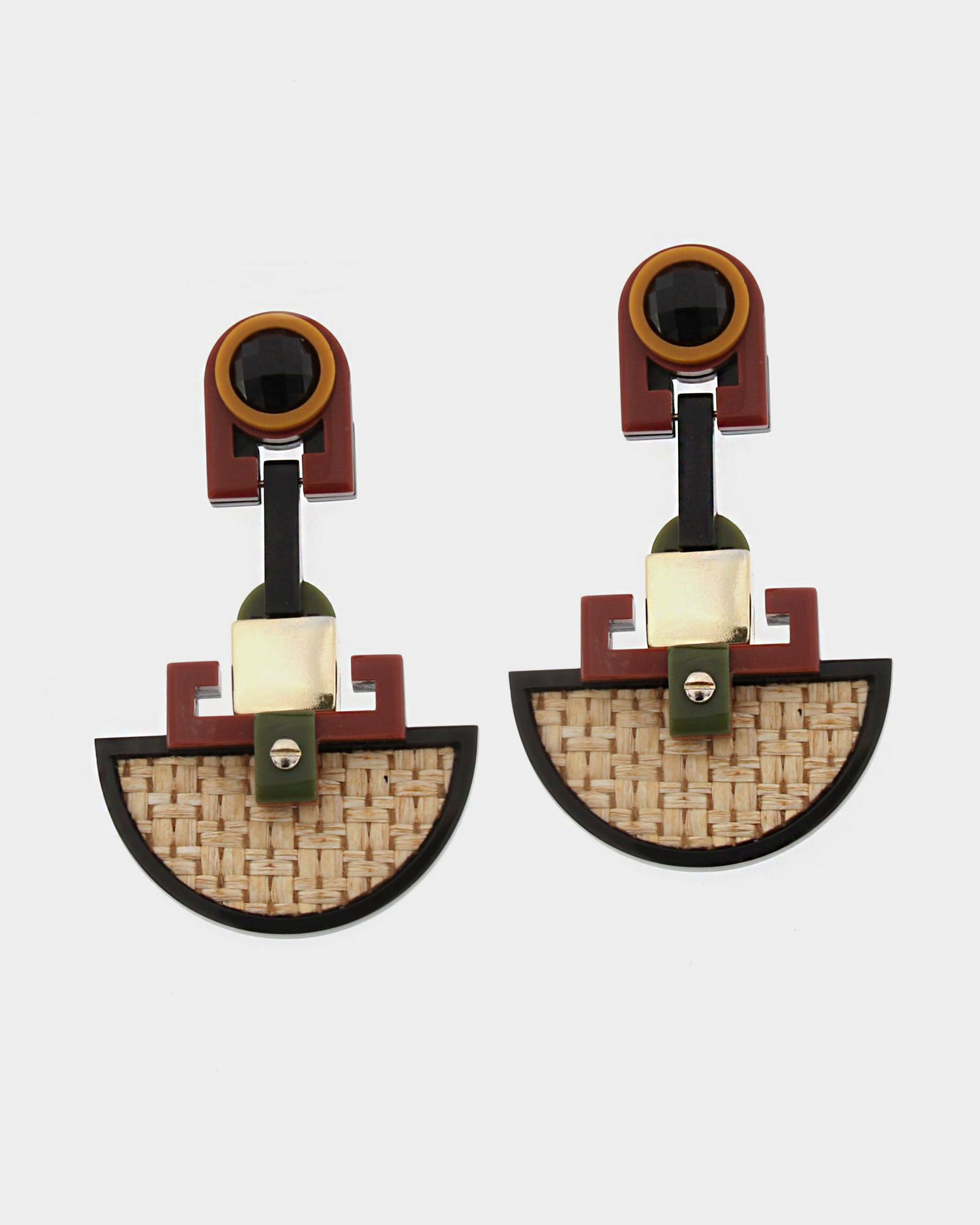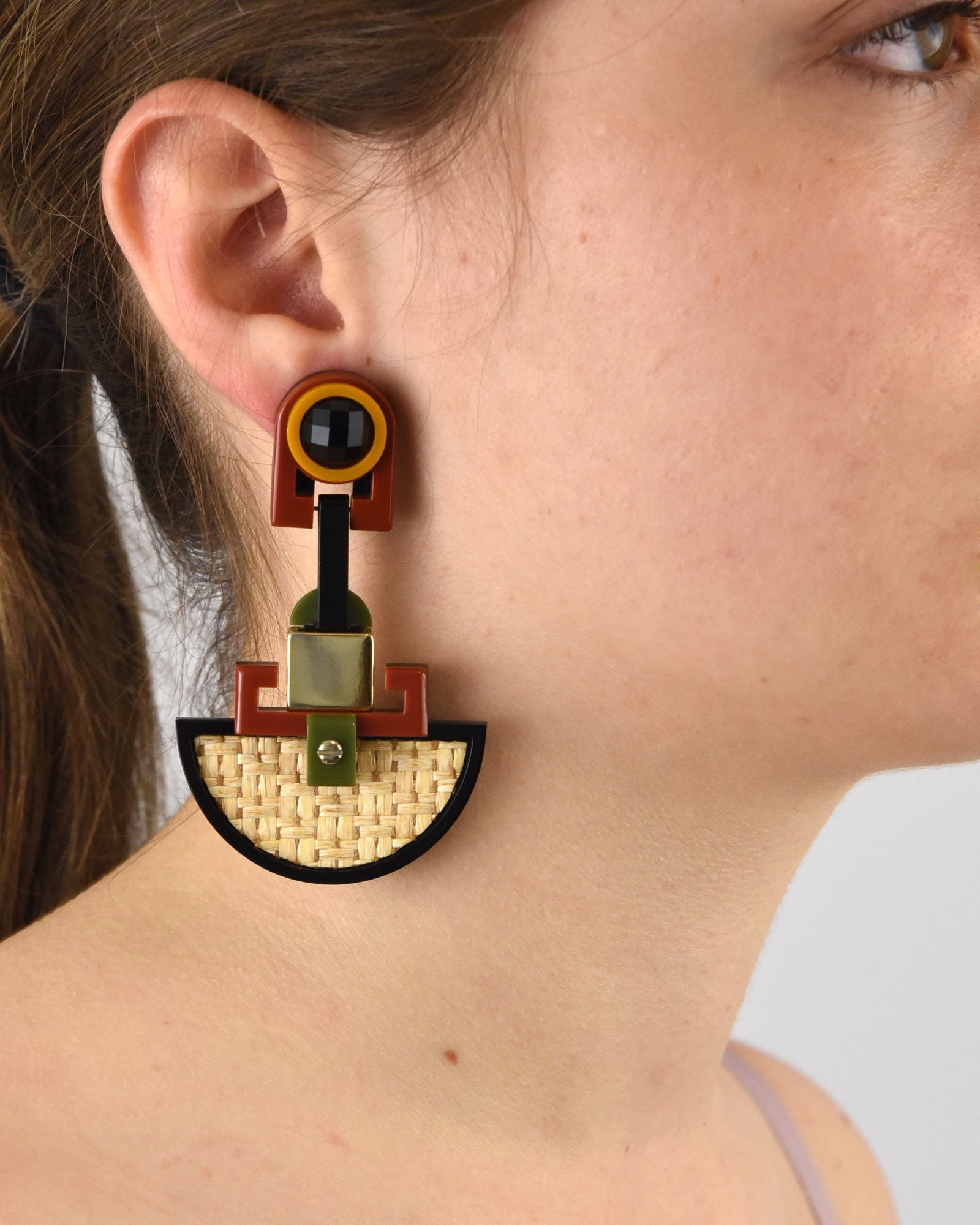 Diseño geométrico en resina combinado con paja natural, cristal negro y adornos dorados