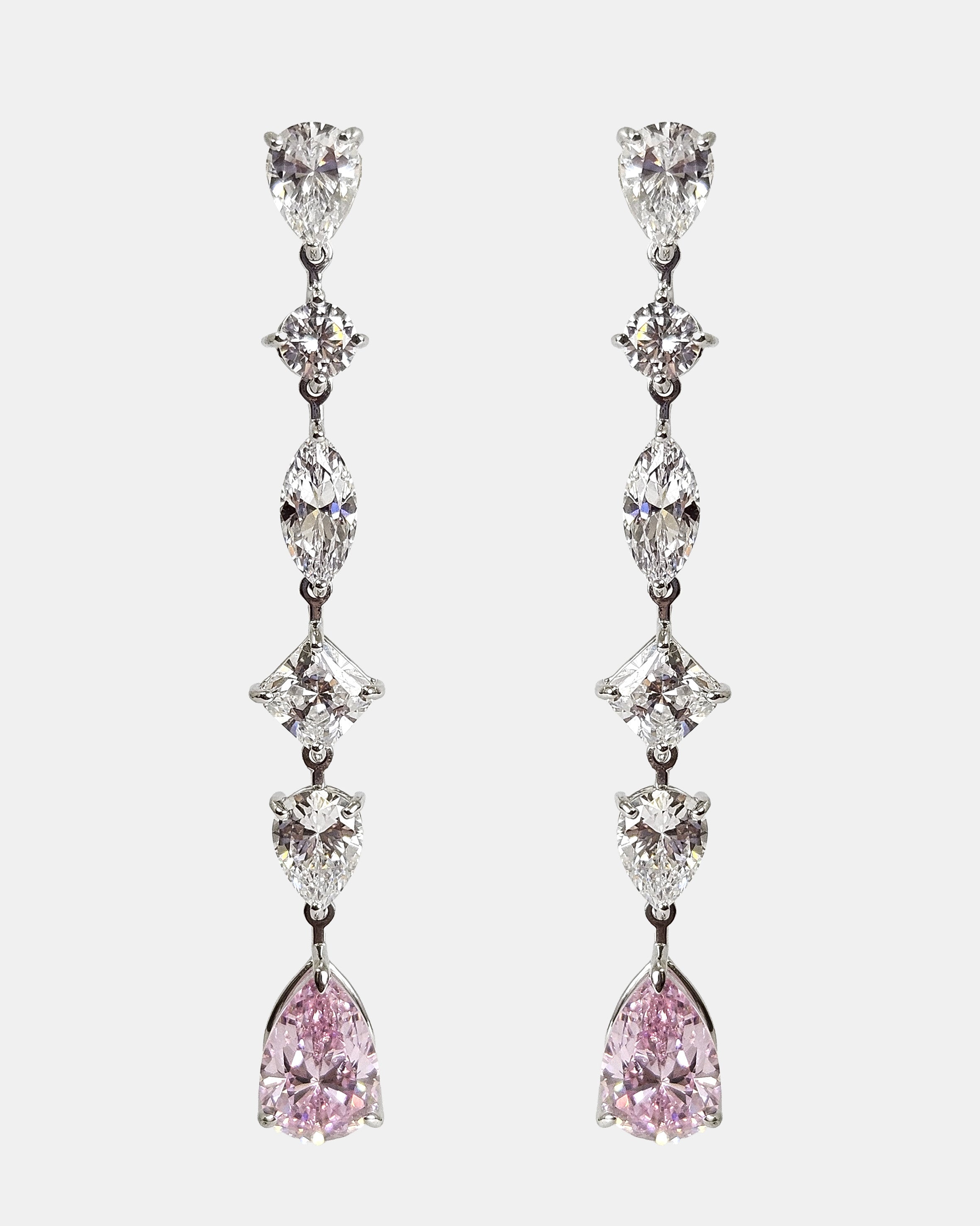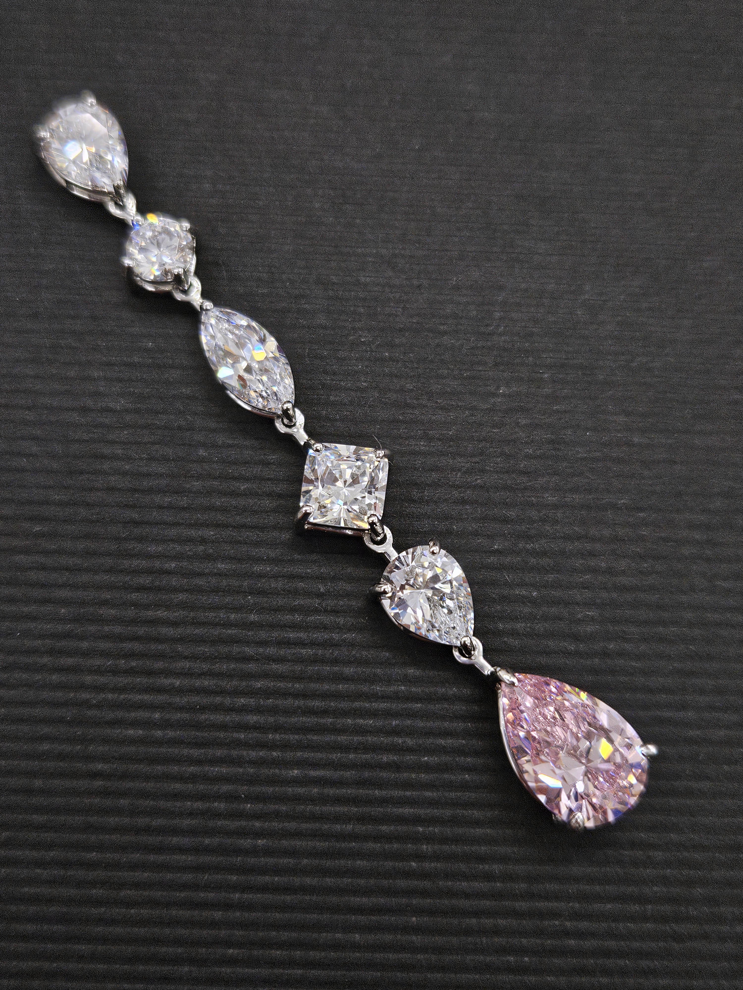 Pendiente en plata y zirconitas rosa y blanco en talla pera, marquesa y brillante engastadas a mano