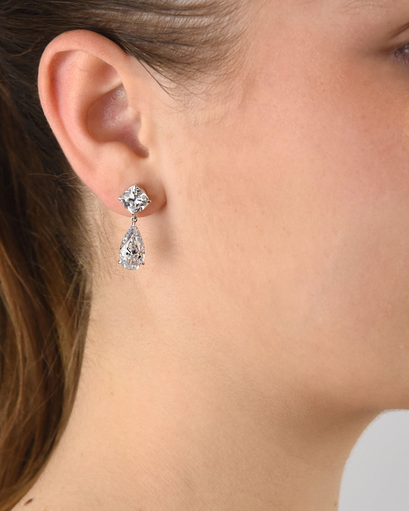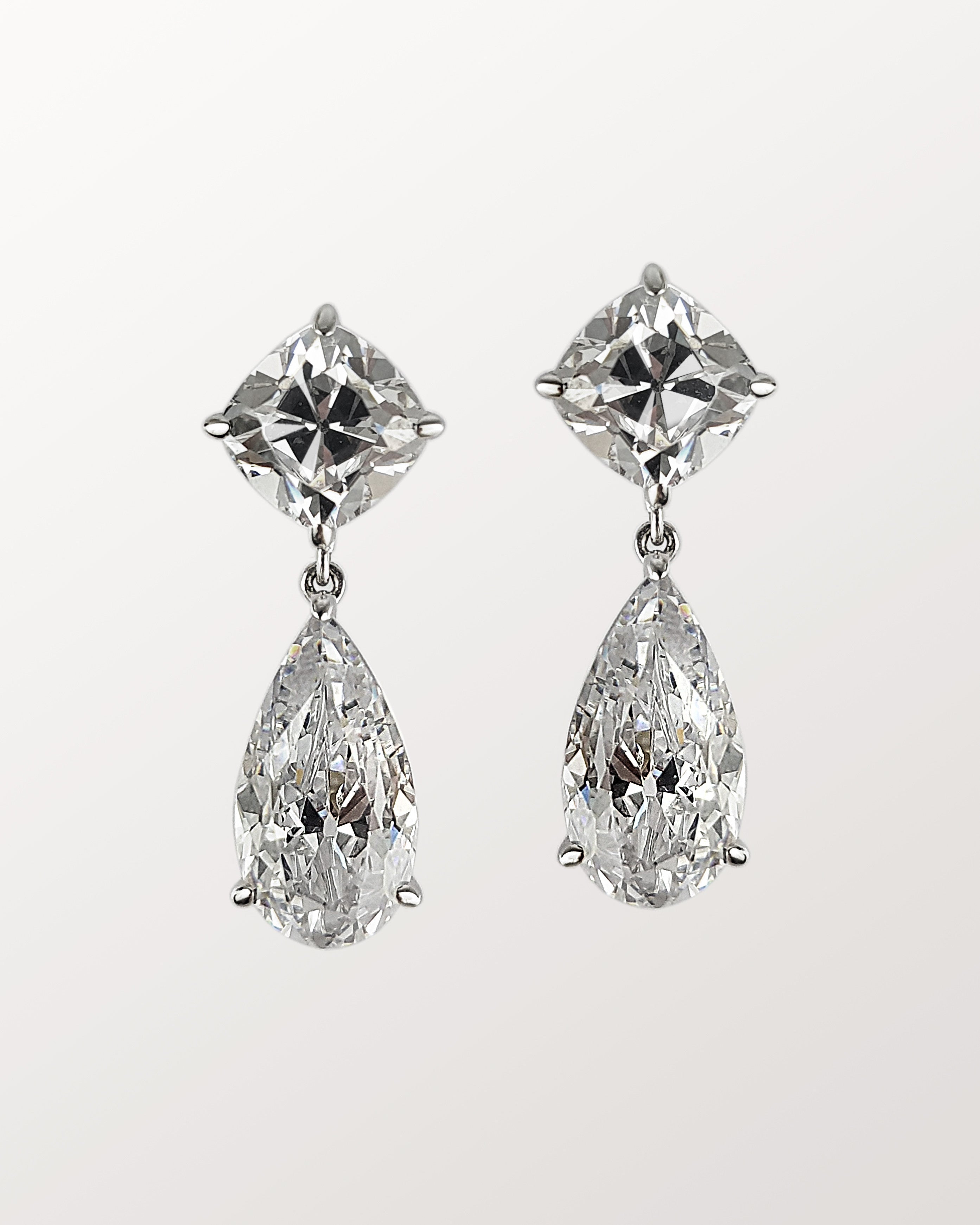 Pendientes en lágrima de plata y zirconita engastado a mano color blanco