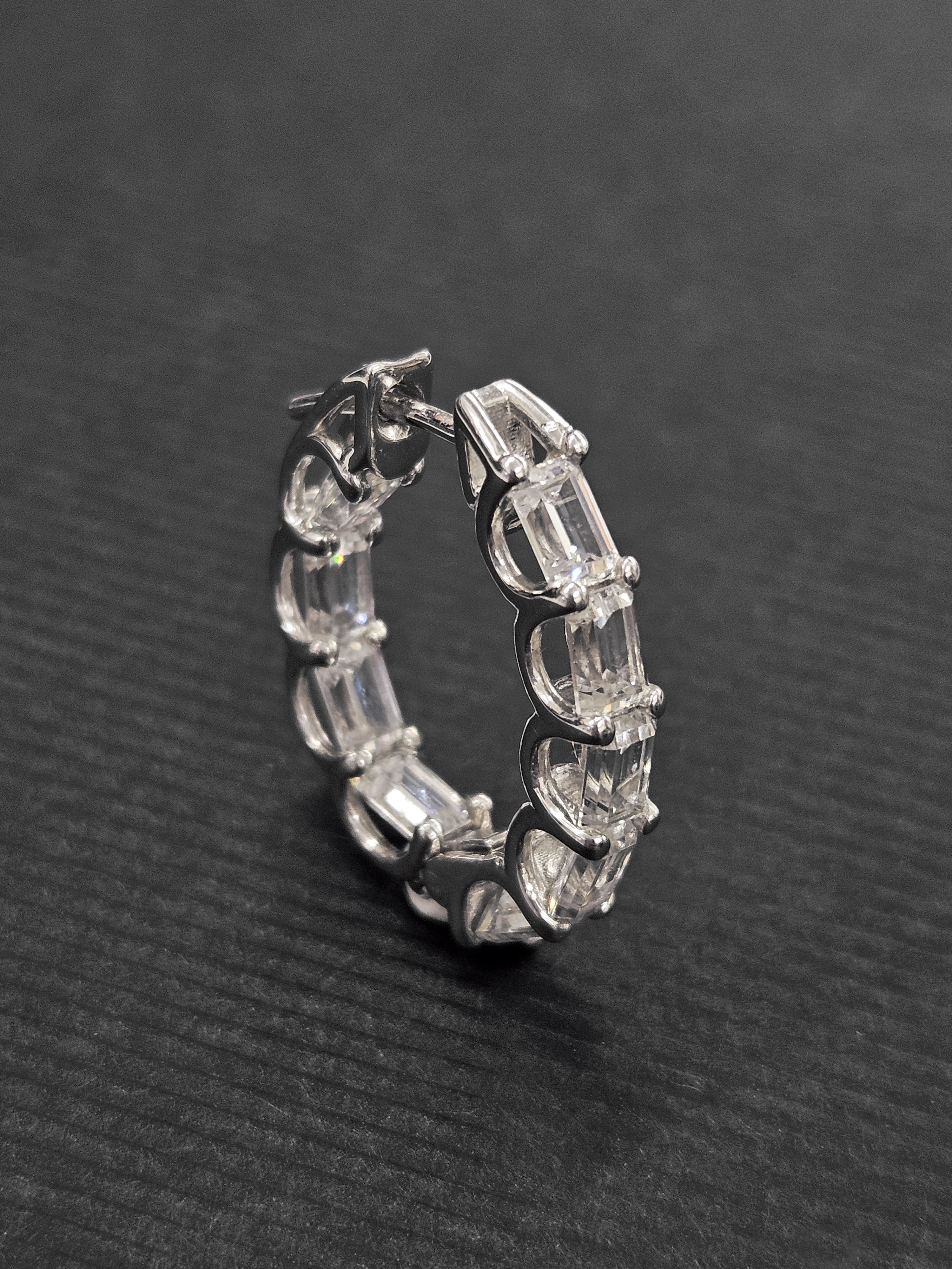 Pendiente en plata y zirconitas blancas en talla baguette engastada a mano