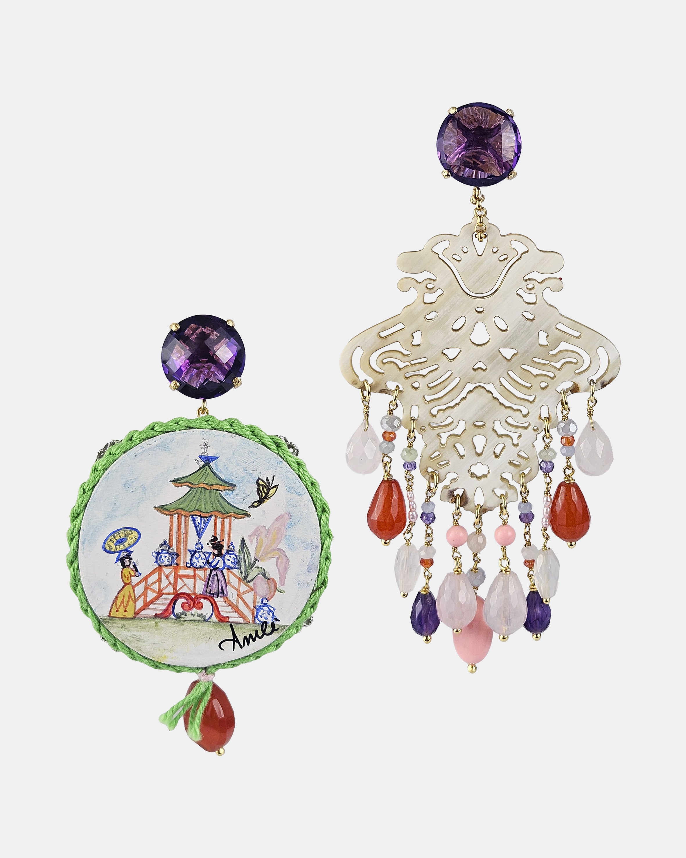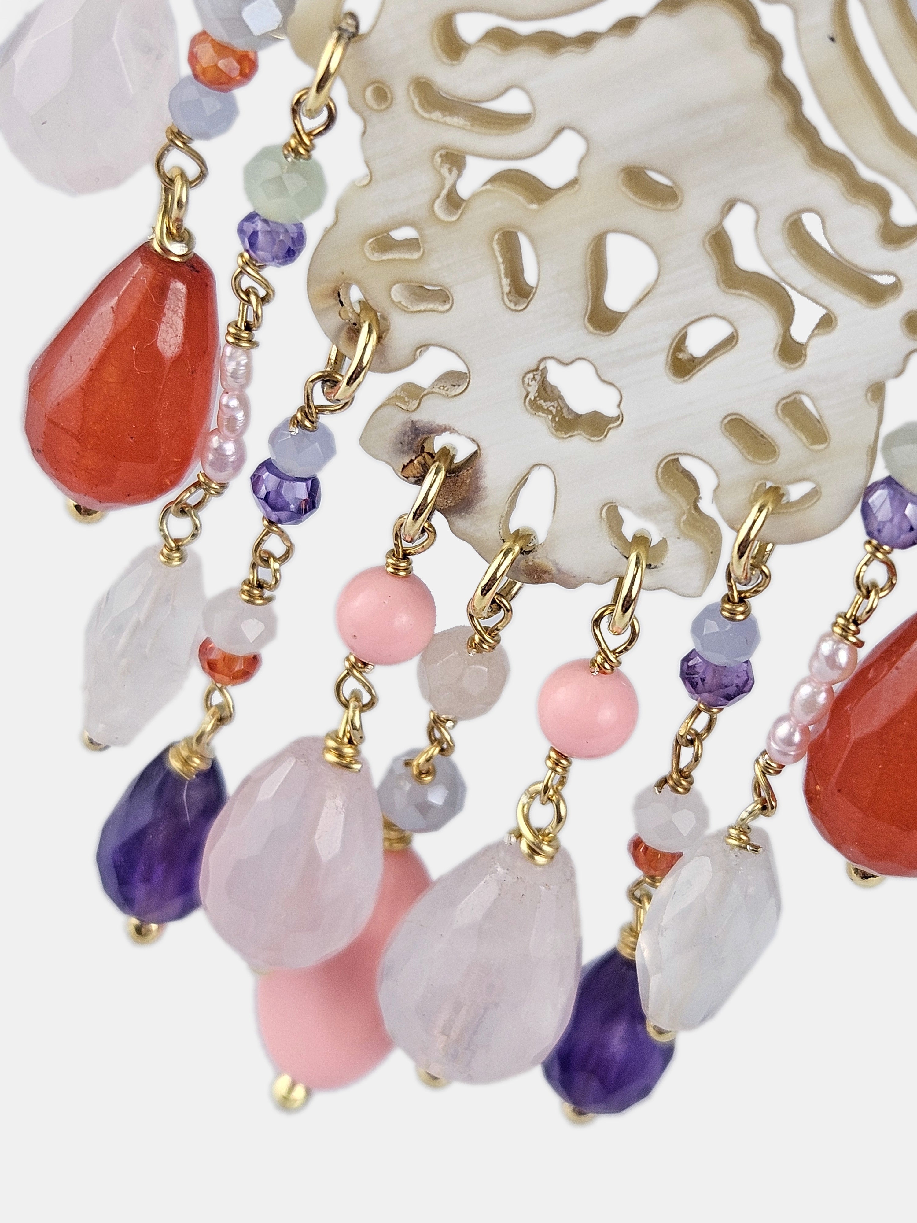 Cabezal en piedra hidrotermal facetada color amatista con cierre en plata y baño de oro