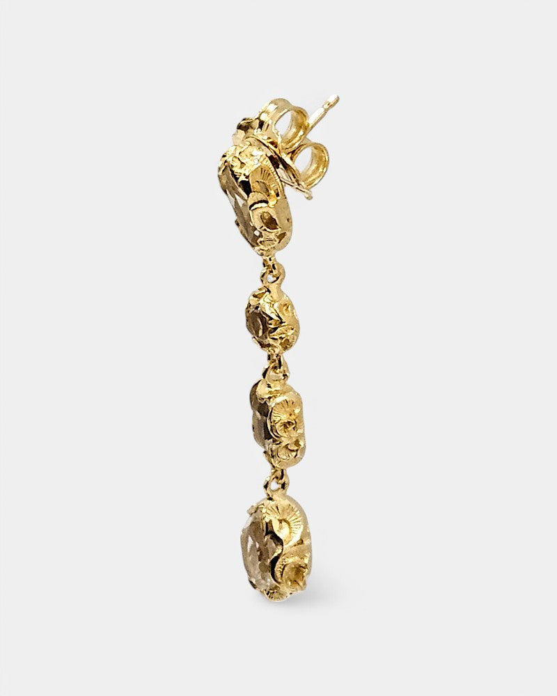 El diseño combina la tradición joyera con un estilo actual: ligeros y sofisticados que realzan cualquier look, desde el día a día hasta una ocasión especial. Su textura y detalles ornamentales reflejan la luz de manera única, aportando un brillo natural lleno de carácter.