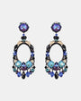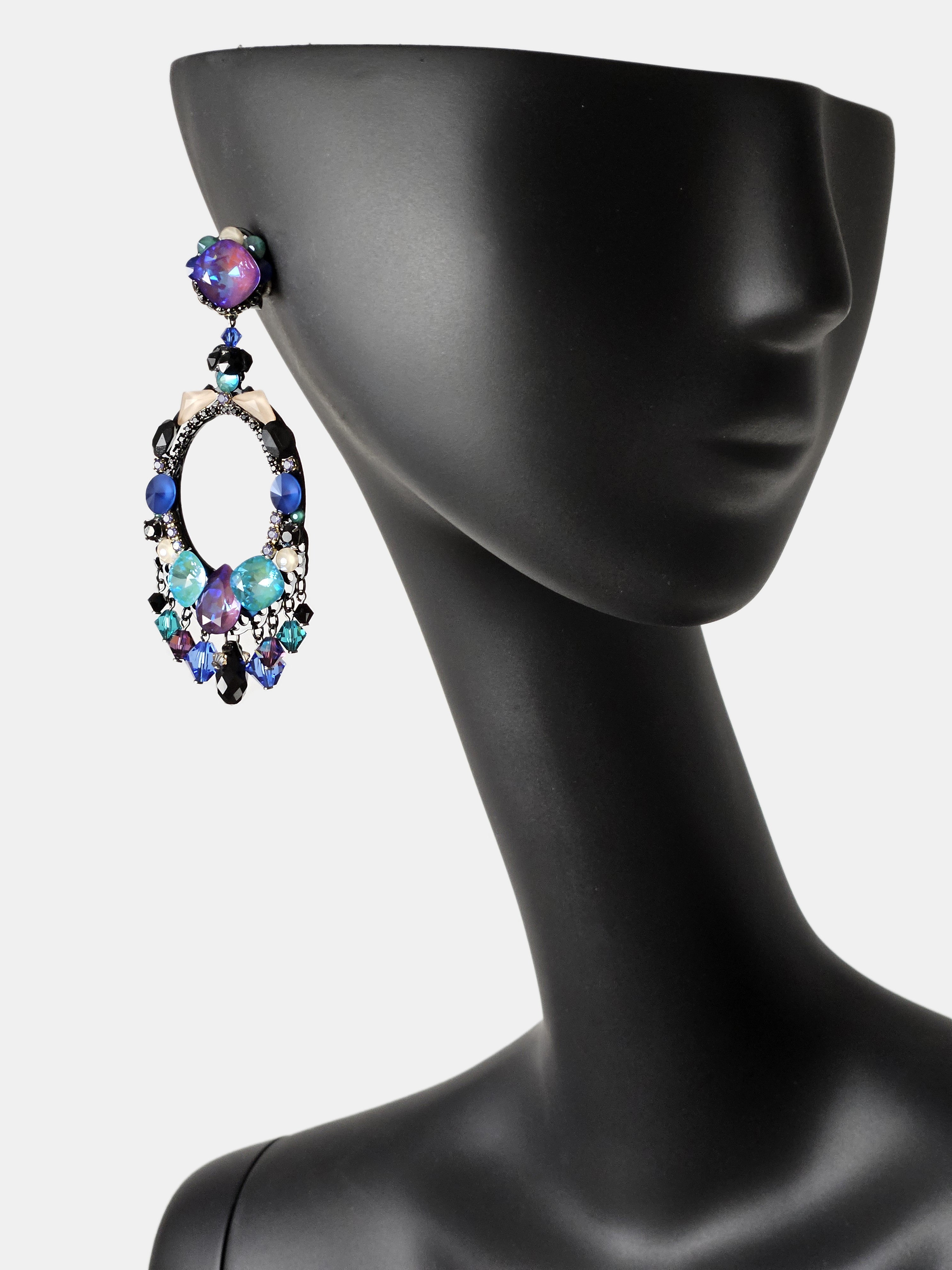 Pendientes largos de fiesta con cristales Swarovski multicolor, morado y azul