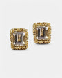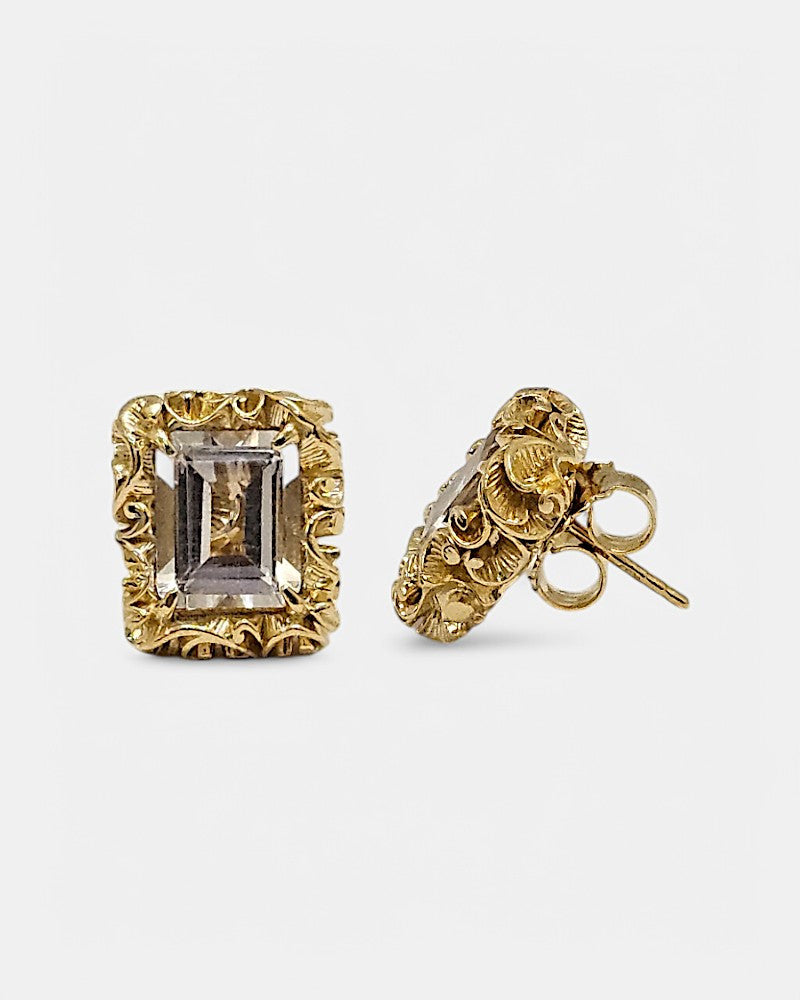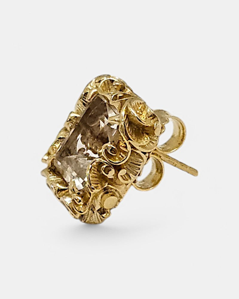Pendiente en plata bañada en oro amarillo piedra rectangular (10mmx8mmx5,5mm) cristal de roca cierre apresion.