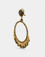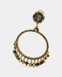 Los pendientes “Eterna” reinventan el clásico aro en una versión maxi llena de glamour. Confeccionados en metal dorado y engastados con cristales ahumados facetados, destacan por su movimiento fluido y su capacidad de atrapar la luz en cada ángulo.