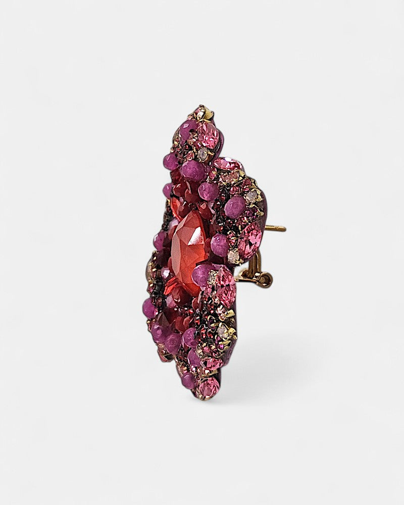 Diseño en flor con combinación de cristales de swarovski en tonos rojos y fresas