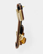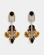 Los pendientes Solaris de Gissa Bicalho son una declaración de estilo y sofisticación. Su diseño geométrico con inspiración art déco combina resina en tonos carey, marfil y negro, realzada con detalles en dorado mate y un elegante adorno facetado en forma de lágrima.
