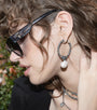 En el centro, una perla blanca colgante aporta luz y feminidad, equilibrando el carácter artesanal de la pieza. Como todas las joyas de la firma, son hipoalergénicos y libres de níquel.