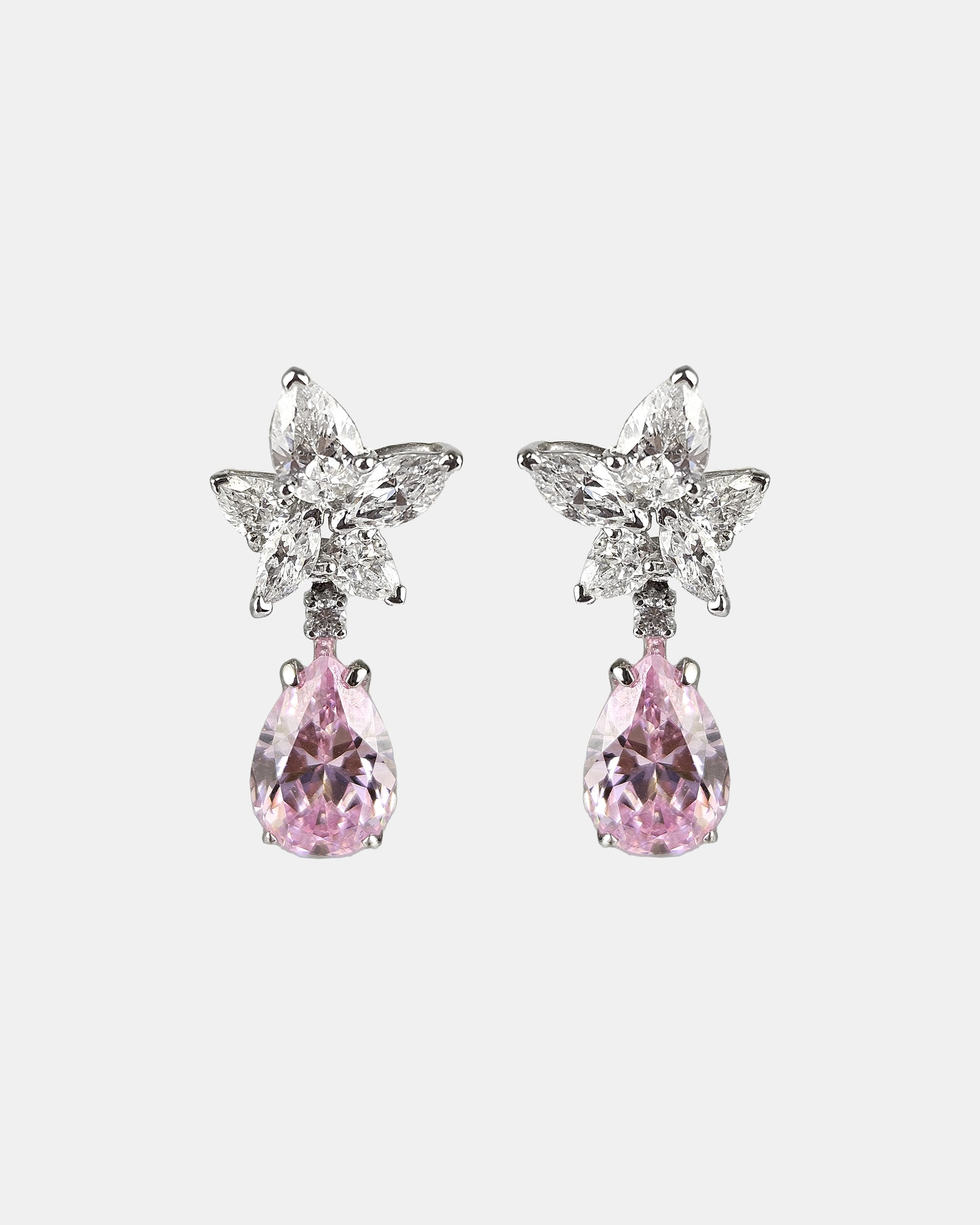 Pendiente en plata y zirconitas en color rosa y blanco engastadas a mano