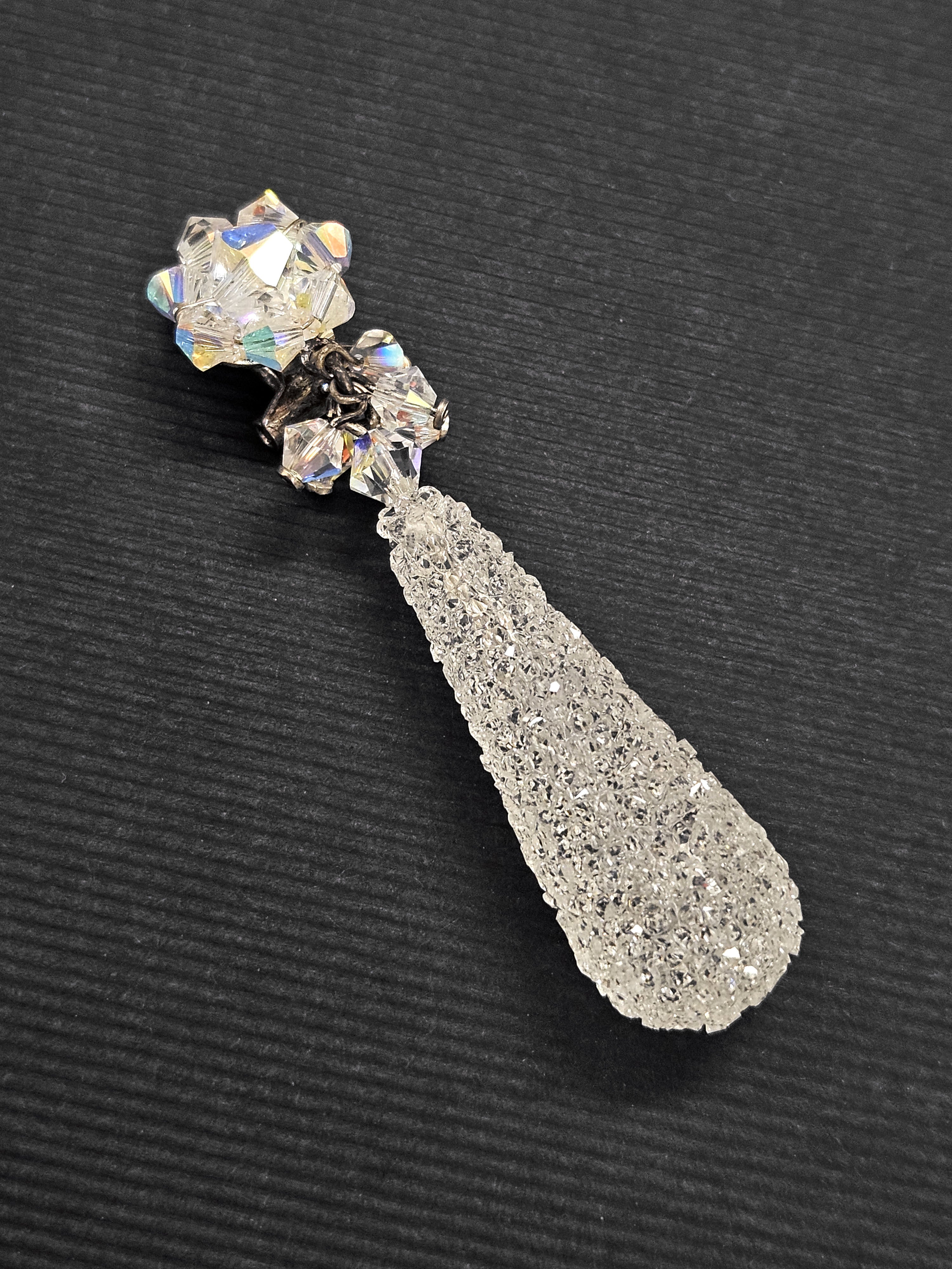 Diseño articulado en lágrima hecho a mano en pavé y mosaico swarovski blanco glacé