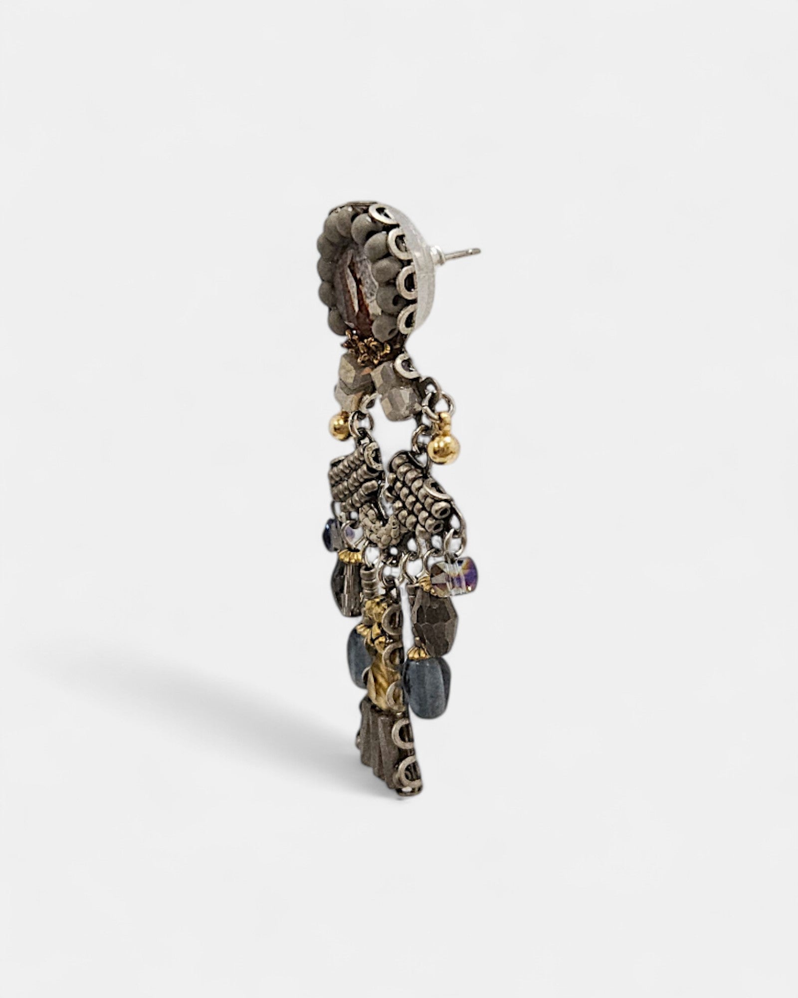 Pendientes Largos Artesanales Plateados con Cristales y Detalles Dorados Mist