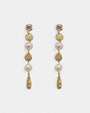 Pendientes largos dorados cincelados con perlas