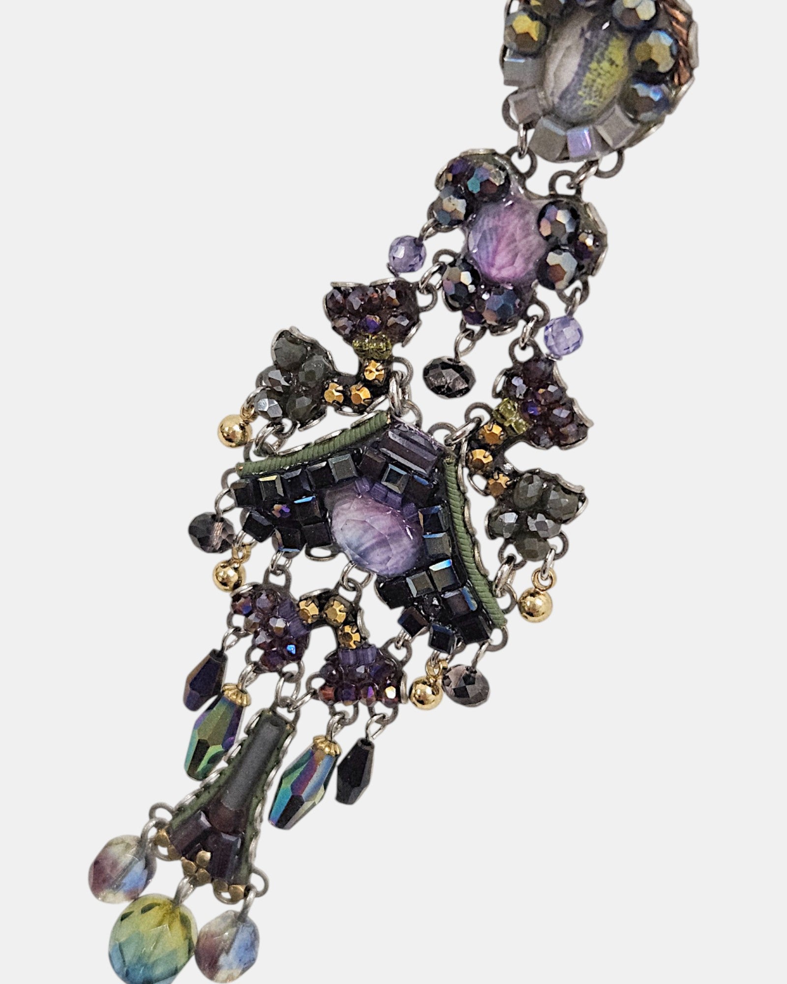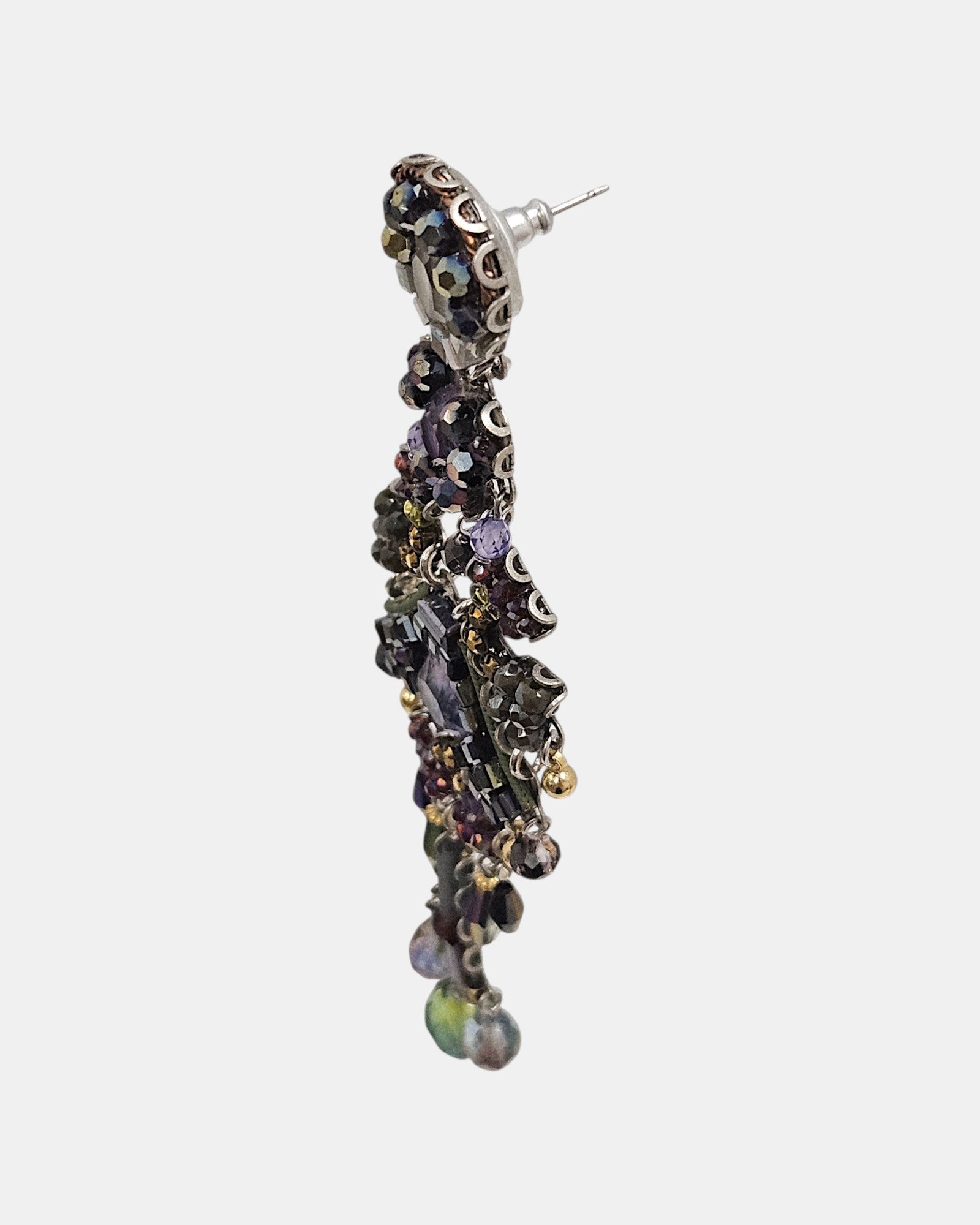 Los pendientes Ayala Bar artesanales en tonos multicolor son una joya única que combina sofisticación y creatividad. Elaborados a mano con cristales, cuentas y metales, destacan por sus tonalidades violetas, verdes, doradas e iridiscentes que aportan luz y distinción a cualquier look.