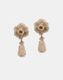 Diseño de cabezal articulado de flor con colgante de lágrima en swarovski tono arena